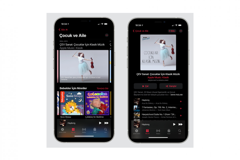 ÇEV Sanat ve Barış için Müzik Apple Music’e özel hazırladığı listelerle çocuklarla buluşuyor. ÇEV Sanat tarafından oluşturulan listelerde Türkiye’nin yetenekli genç müzisyenlerinin performansları da yer alıyor. Barış için Müzik özel listesi ise Barış için Müzik orkestrasındaki yetenekli çocukların seçkileri ile oluşturuldu.