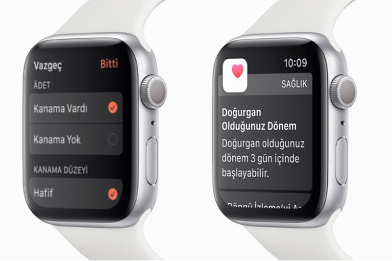 Sağlığınızı yakından takip edebilmeniz için Apple Watch kalp atış hızınızı takip ediyor ve yolunda gitmeyen bir şey olduğunda size haber veriyor. Menstrüel döngünüzü izlemenize yardımcı oluyor. Bulunduğunuz ortamdaki ses seviyesi işitme duyunuzu etkileyecek noktaya çıktığında sizi uyarıyor. Dilerseniz Nefes, Kalp Atış Hızı ve Gürültü gibi komplikasyonları gün boyunca gözünüzün önünde olmaları için saat kadranınıza da ekleyebiliyorsunuz.