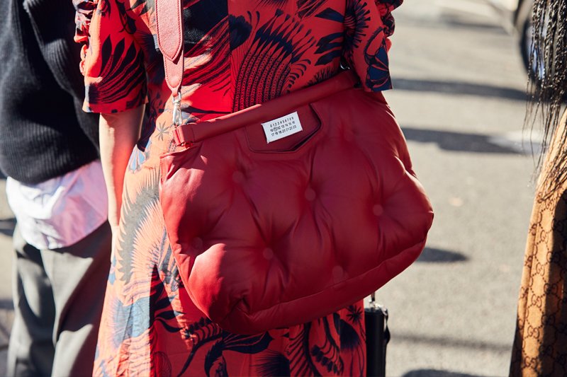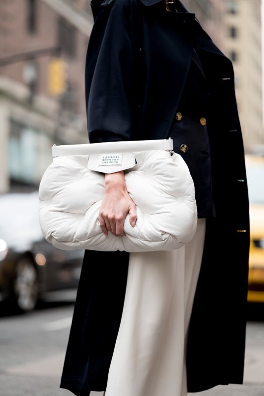 Önceki sezonlarda hayatımızda olan kapitone çantalar, omuz taşımısına oldukça uygundu. Ama işler değişti. Margiela Glam Slam Bag, abartılı bir siluete sahip modelle karşımızda. Çantanın; pamuk şekeri pembesinden beyaza kadar hemen hemen her tonu mevcut.