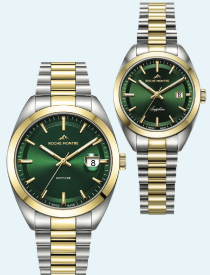 Roche Montre Lenzburg modeli kadın saati 30 mm kasa ile ince bilekte şıklık, erkek saati 40 mm kasa ile güçlü duruş sunuyor, Ronda 585 mekanizma kusursuz hassasiyet sağlıyor.