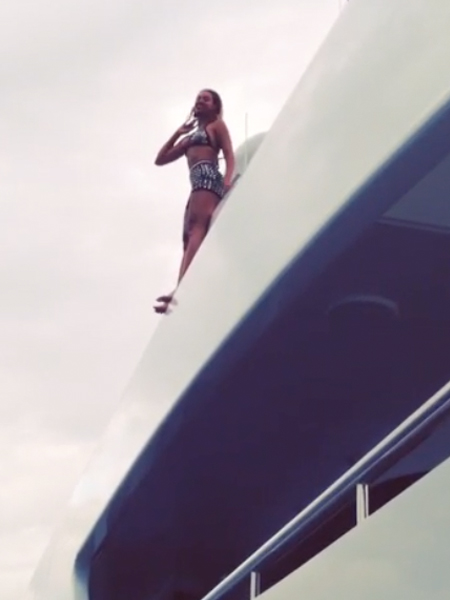 Yatın en tepesinden denize atlayan Beyonce, cesaretinin sadece sahne kıyafetleriyle sınırlı kalmadığını gösterdi.