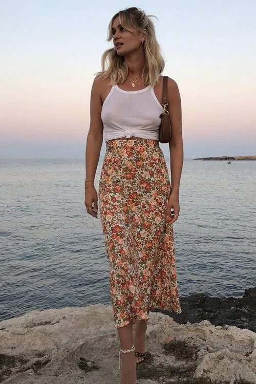 Tank Top + Floral Midi Etek