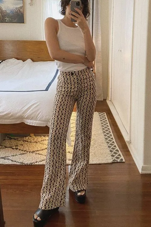 Tank Top + Desenli Geniş Paça Pantolon + Mule Terlik