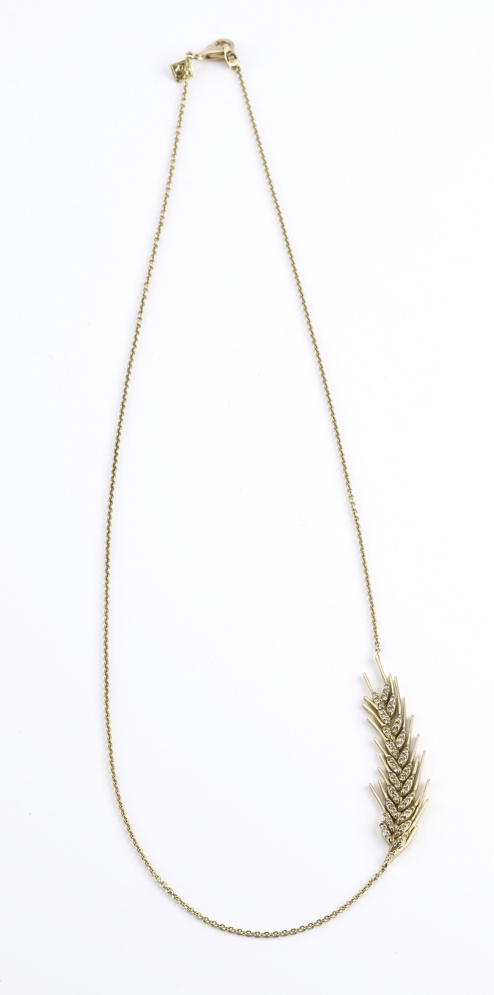 Mücevher tasarımcısı Ayşe Rodoslu, ikonik başak kolyesini, üçlü ve pırlantalı versiyonuyla sunuyor.