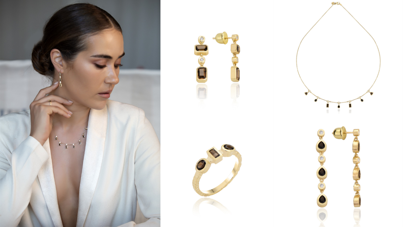 14 ayar altın üzerine smoky ve pırlanta taşlarla bezenmiş Gaia koleksiyonu, www.ayserodoslu.com‘ da ve 184 Dereköy’de satışa sunuluyor.