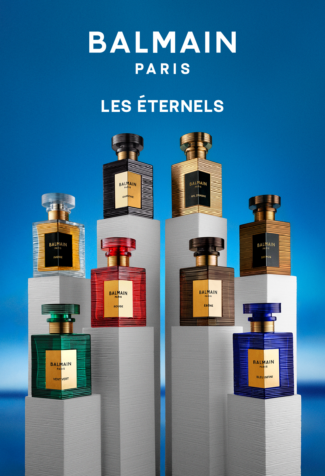 Balmain Beauty’nin, “kimlik arayışı” ve “kendini bulma” temalarından yola çıkarak hazırladığı ilk koleksiyonu Les Éternels de Balmain, parfüm dünyasına yeni bir soluk getiriyor. Koleksiyon, misk, amber, çiçeksi ve odunsu koku ailelerinden oluşan sekiz çok katmanlı parfümden oluşuyor. Balmain’in Kreatif Direktörü Olivier Rousteing, markanın zengin arşivlerinden ilham alarak bu özel parfümleri yeniden yorumladı ve Vent Vert, Ivoire, Ébène ve Carbone gibi tarihi parfümler, modern çağ için uyarlanarak koleksiyona dahil edildi. Rousteing’in detaylı araştırmaları sonucunda Balmain’in tarihsel mirasını günümüzle buluşturmak ve markanın derinliğini yansıtarak parfümseverlere unutulmaz bir deneyim sunmak için koleksiyona Sel d’Ambre, Rouge, Bronze ve Bleu Infini ile dört yeni koku eklendi.