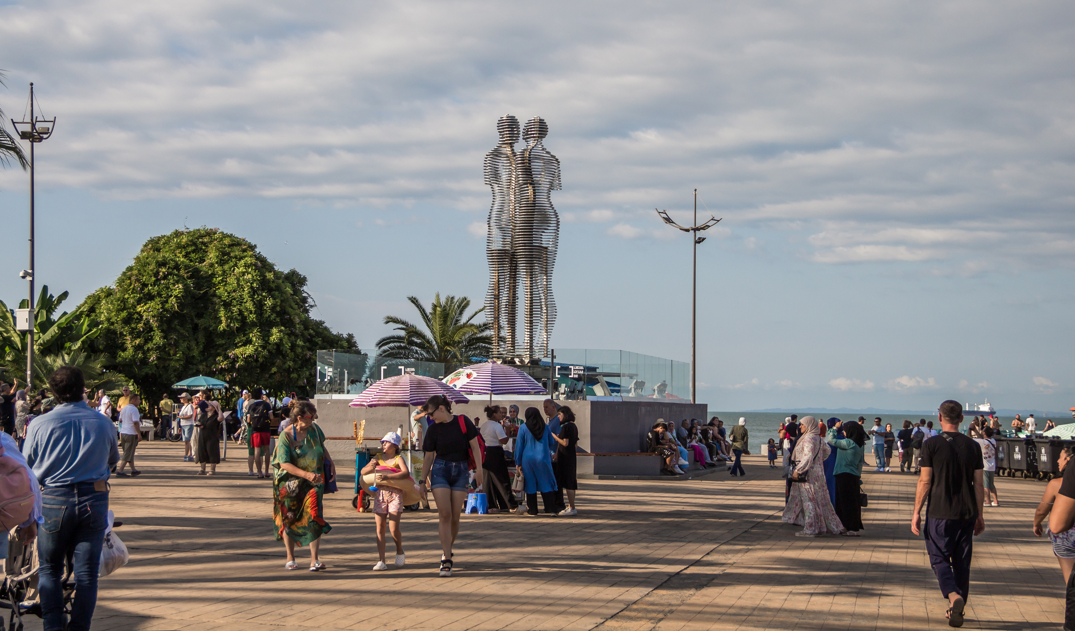 Batum Bulvarı yakınlarındaki “Ali ve Nino” heykeli, şimdiki konumuna yerleştirildiği 2010 yılından bu yana kentteki en ünlü yapılar arasında yerini almış durumda. “Ali ve Nino”, Gürcü heykeltraş Tamara Kvesitadze tarafından ilk olarak 2007 yılında Venedik Bienali için “Erkek ve Kadın” adıyla tasarlanmış ve daha sonra Kurban Said’in 1937 tarihli meşhur romanına atıfla “Ali ve Nino” adını almış. 10 dakikada bir birbirine yaklaşan ve daha sonra ayrılan 8 metrelik iki hareketli figürden oluşan bu heykel, Azerbaycanlı Müslüman Ali ile Gürcü Hıristiyan Nino’nun kültürel farklılıklarına rağmen yeşerttiği aşkın hikayesinden ilham alıyor.