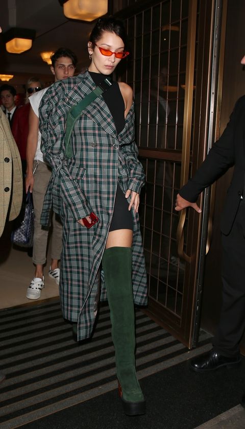 Claudia Pi trençkotu ve diz üstü botlarıyla Tommy x Gigi defilesine giderken…