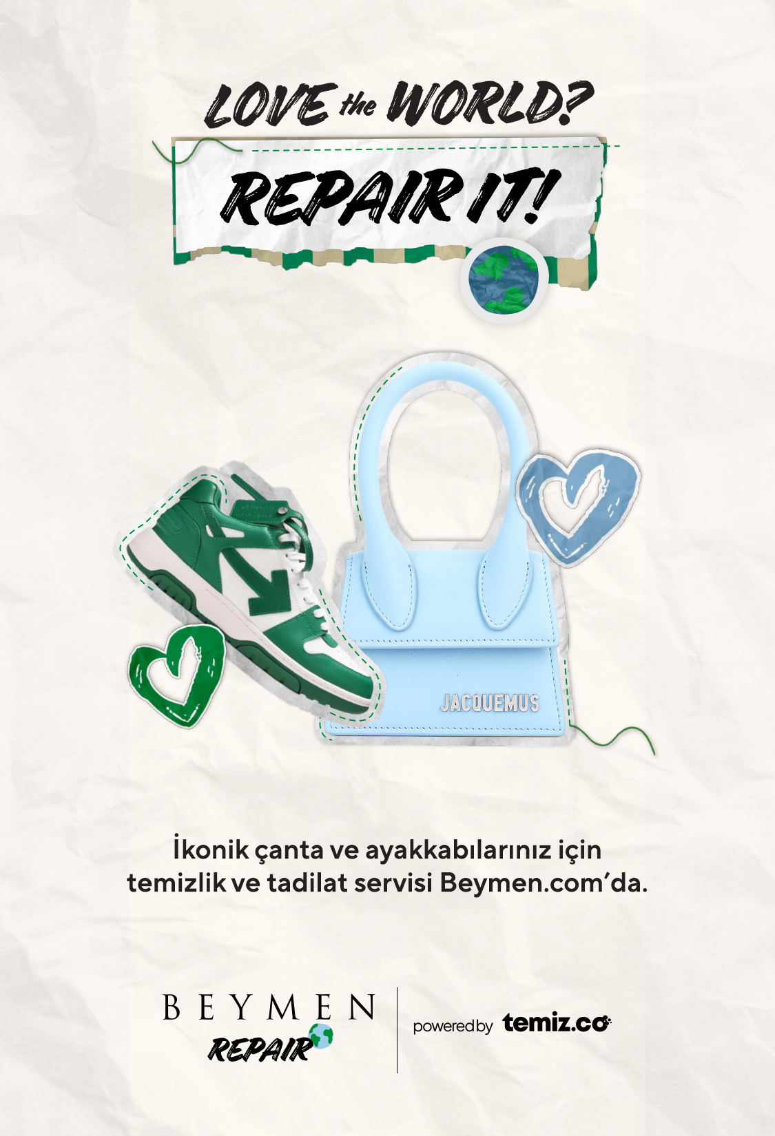 Beymen ve temiz.co iş birliği ile hayat bulan Beymen Repair ile Beymen müşterileri, Beymen.com üzerinden ayakkabı ve çanta temizlik ve tadilat servislerinden yararlanabiliyor. Beymen Repair, temiz.co’nun yüksek standarttaki teknolojisi ve kaliteli hizmet ayrıcalığı ile kullanıcılarına premium bir deneyim sunuyor.