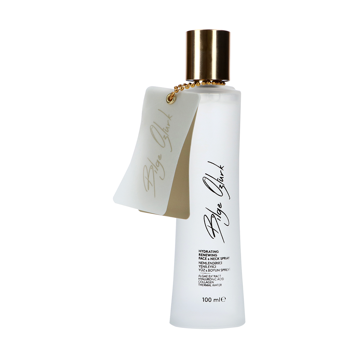 Bilge Öztürk Nemlendirici ve Yenileyici Yüz & Boyun Spreyi zenginleştirilmiş Alg Özü ve Kolajen içeriği ile cildinizin esneklik kazanmasına yardımcı olurken, içeriğindeki Hyalüronik Asit sayesinde cildinizin nemlendirilmesini destekler. Termal Su içeriği ile cildinizi daha ferah hissetmenize ve yenilemeye yardımcı olur. ‘Algea Extract’ yani Yosun Özü ile cildi yumuşatır, nemlendirir ve antibakteriyel özellik sağlar. Yosun özü kolajen sentezini arttırarak, cildin dokusunu destekler ve kırışıklıkların azalmasına yardımcı olur. Yosundan elde edilen DNA cildi nemlendirmeye ve korumaya yardımcı olur, cildi sıkılaştırıcı etkisi zamanından önce oluşan yaşlanma belirtilerini ve ciltteki çatlakların giderilmesine destekler.