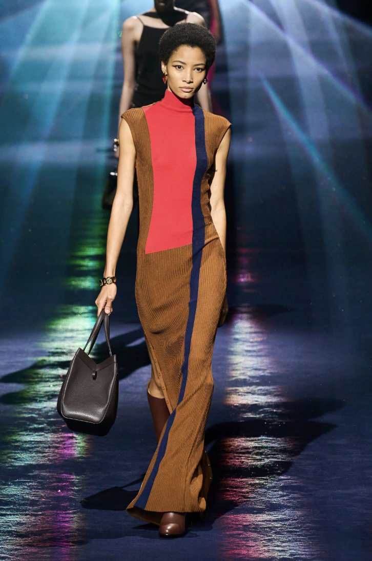 Fendi, her daim geçmişine modern bir yaklaşımla bakan bir marka. Koleksiyon, 1996 Sonbaharı Fendi arşivlerinden yeniden canlandırılan grafik motiflerle tarihini kutluyor.