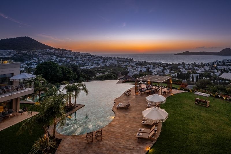 Yalıkavak Marina’ya çok yakın konumda, ‘’Mansion’’ tarzı lüks yaşam ve tatil anlayışını zarif ayrıntılarla sunan, on üç odalı, büyüklükleri otuz beş ile doksan iki metrekare arasında değişen deniz manzaralı oda ve suitleri, on sekiz bin metrekarelik muhteşem bahçe içindeki sonsuzluk havuzu, nefes kesen kesintisiz manzarası ve eşsiz günbatımları ile konuklarını büyülüyor.