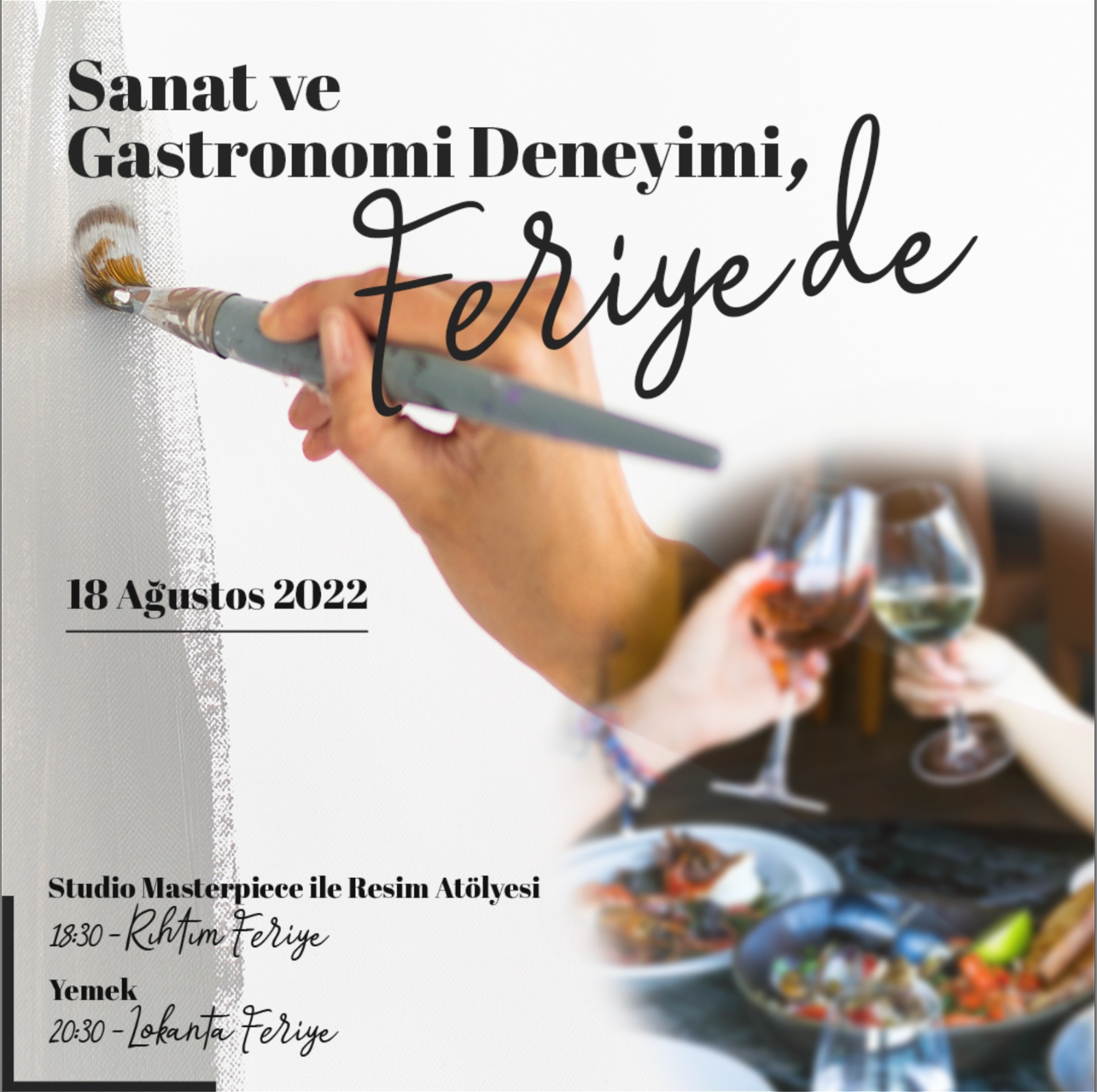 İstanbul’un ikonik noktalarından biri olan Feriye, çok fonksiyonlu yapısıyla, misafirlerine hem yeme içme hem de sürdürülebilir etkinliklerin deneyimlendiği bir yaşam platformu sunuyor. Yılın her ayı farklı etkinliklere ev sahipliği yapan Feriye, Haziran ayında Studio Masterpiece iş birliğinde Wine & Paint konsepti ile başladığı sanat atölyelerine bir yenisini daha ekliyor. Feriye, 18 Ağustos’ta Studio Masterpiece ile bu kez gastronomik deneyimin de yaşanacağı bir resim atölyesi düzenliyor.