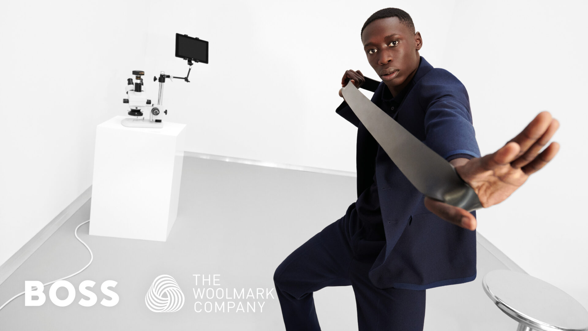BOSS ile Woolmark, dünyanın ilk tamamen örme Merinos yünü karışımlı takım elbisesini yarattı. Konfor, zanaat, stil ve sürdürülebilirlikte cesur bir yeniliğin göstergesi olan Merinos yün karışımlı örme takım elbise, The Woolmark Company ile ortaklaşa geliştirilip BOSS terziliğiyle hayat buldu.