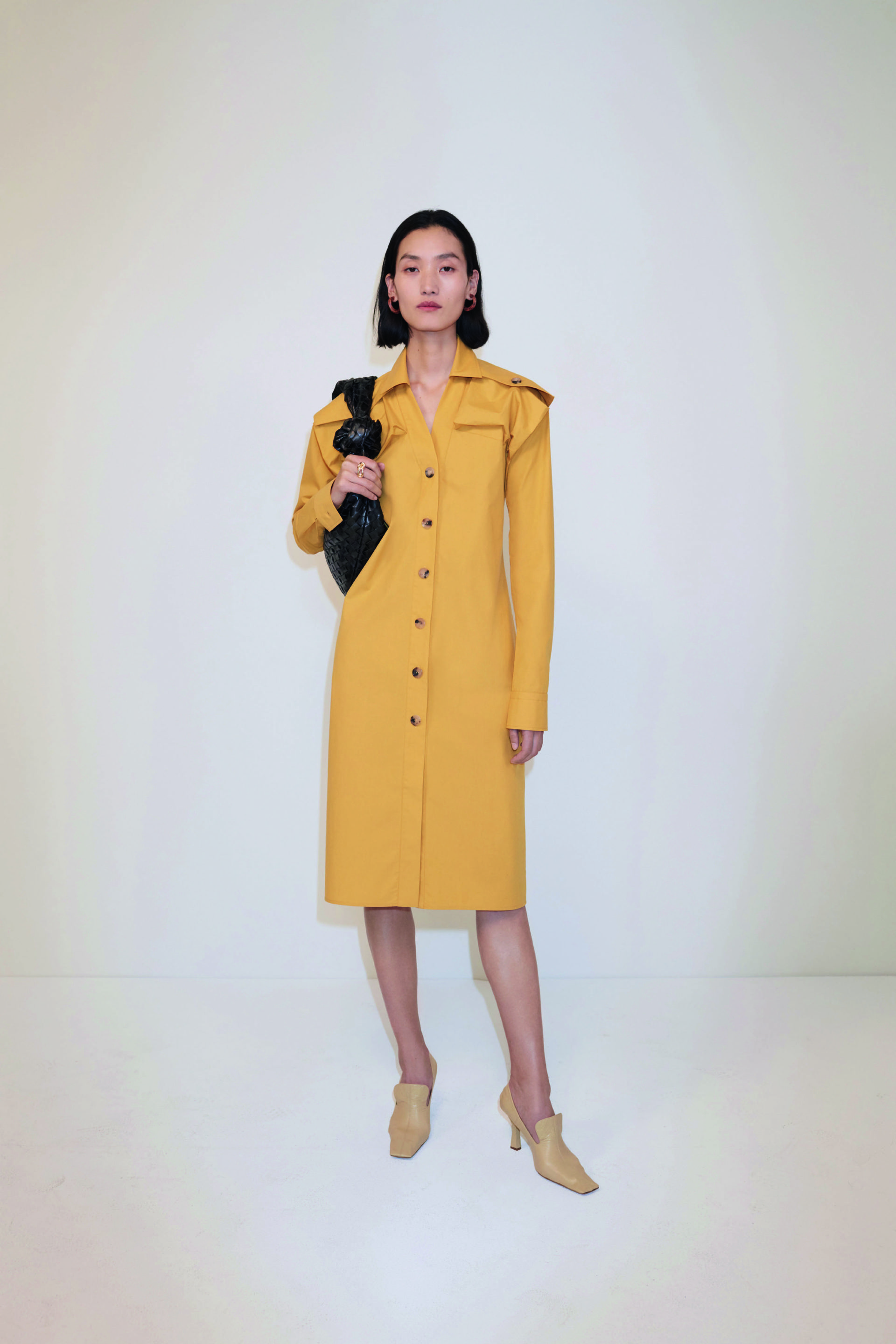 Sıcak ve açık tonlarda bir renk paletine sahip olan Bottega Veneta Pre Spring 2020 Koleksiyonu’nda, ten rengi, nötr kum tonları, siyah ve beyaz birliktelikleri, fıstık yeşili, limoncello sarısı ve koyu yeşili öne çıkıyor.