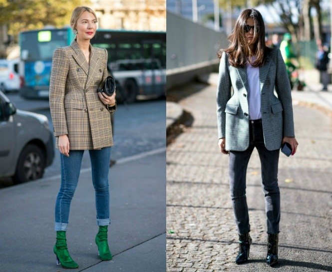 Jean ve renkli botlarla kullanım için en ideali olan kareli blazer ceket.