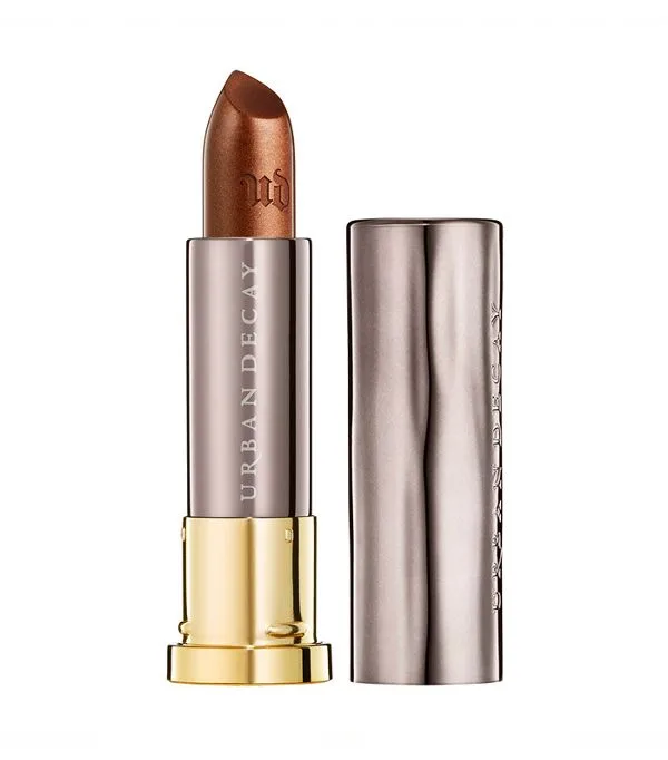 Urban Decay Metallized Vice Lipstick Conspiracy Tam bir 90’lar görünümü mü istiyorsunuz? Urban Decay altın ışıltılı bu rujla dileğinizi gerçekleştiriyor.