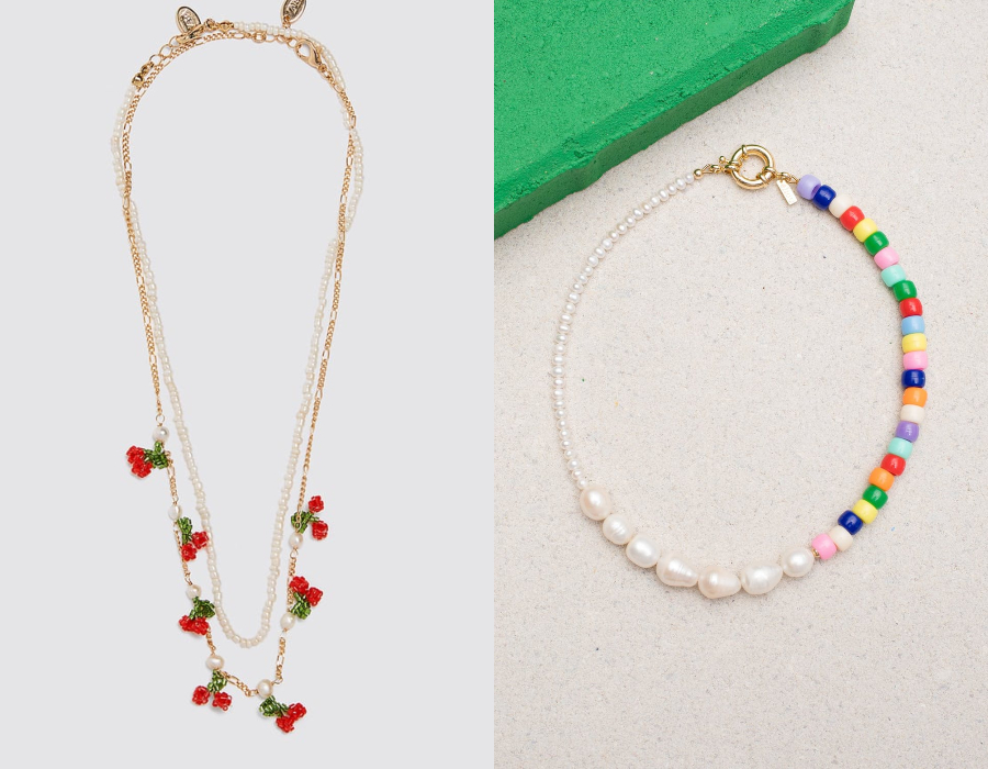 Renkli boncuklar bir araya gelerek yaz meyvelerinin şeklini alıyor! Limon, kiraz, karpuz şekillerindeki takıların tamamlayıcısı ise inciler oluyor.