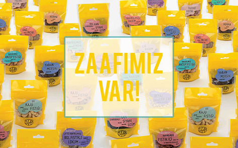 Eğer siz de bizim gibi ofis saatleri içinde atıştırmadan duramayanlardansanız Bilsar’ın yeni kuruyemiş markası Zaaf tam size göre. Abur cuburdan uzak durup sağlıklı kuruyemişlere yönelerek hem iştahımızı tatmin ediyoruz hem de formumuzu koruyoruz!