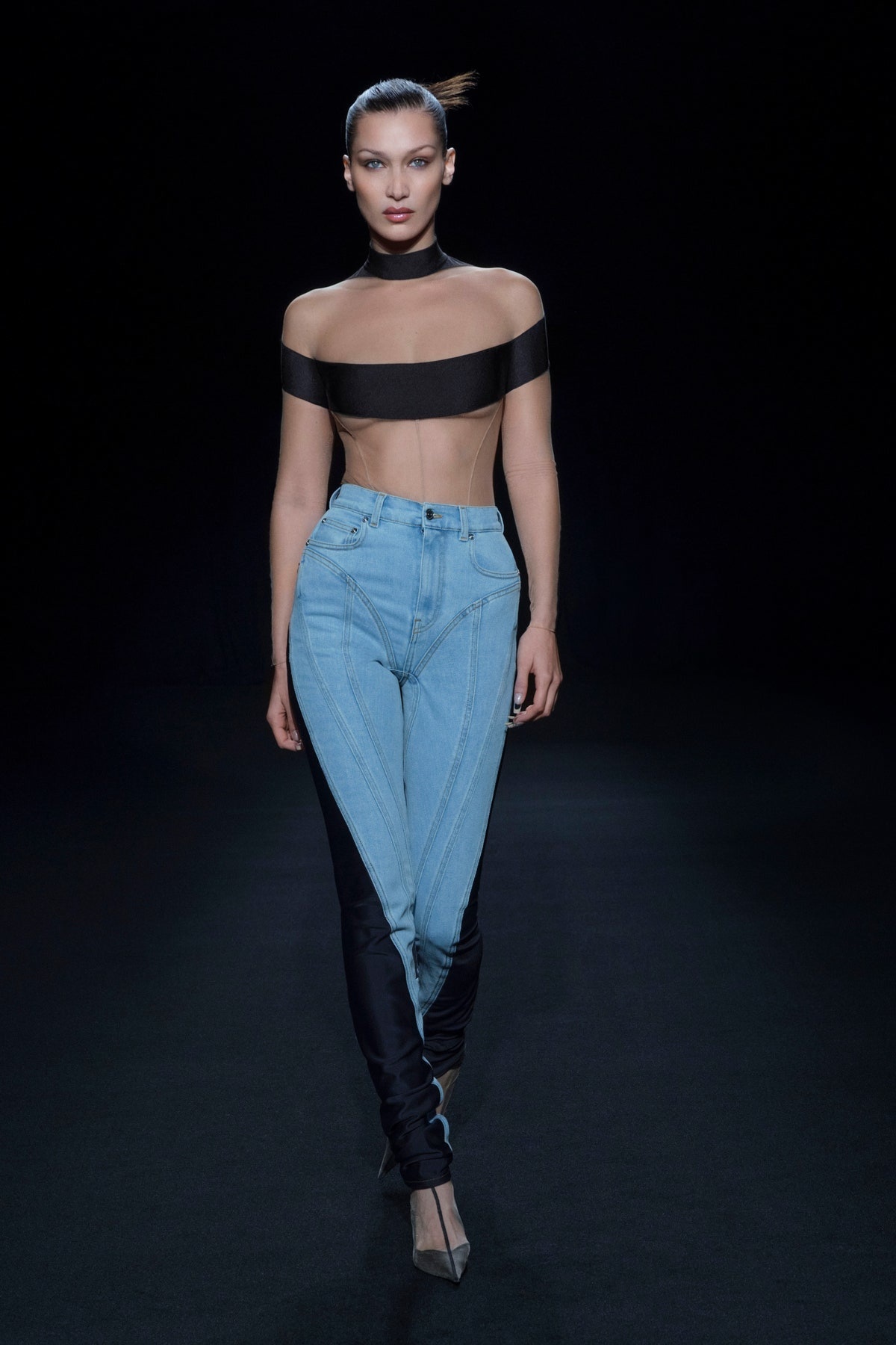 Mugler İlkbahar/Yaz 2021 koleksiyonuna bakılırsa; artık spor giyime de el atmaya başlamış durumdalar. Bella Hadid’in giydiği grafik parça da bunun kanıtı.