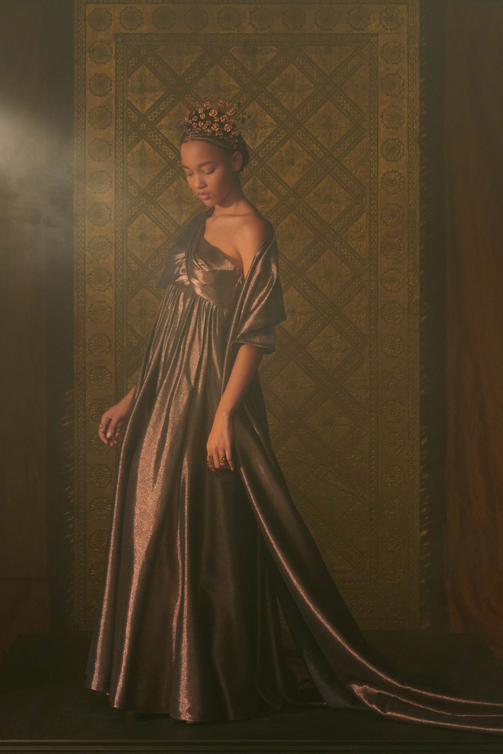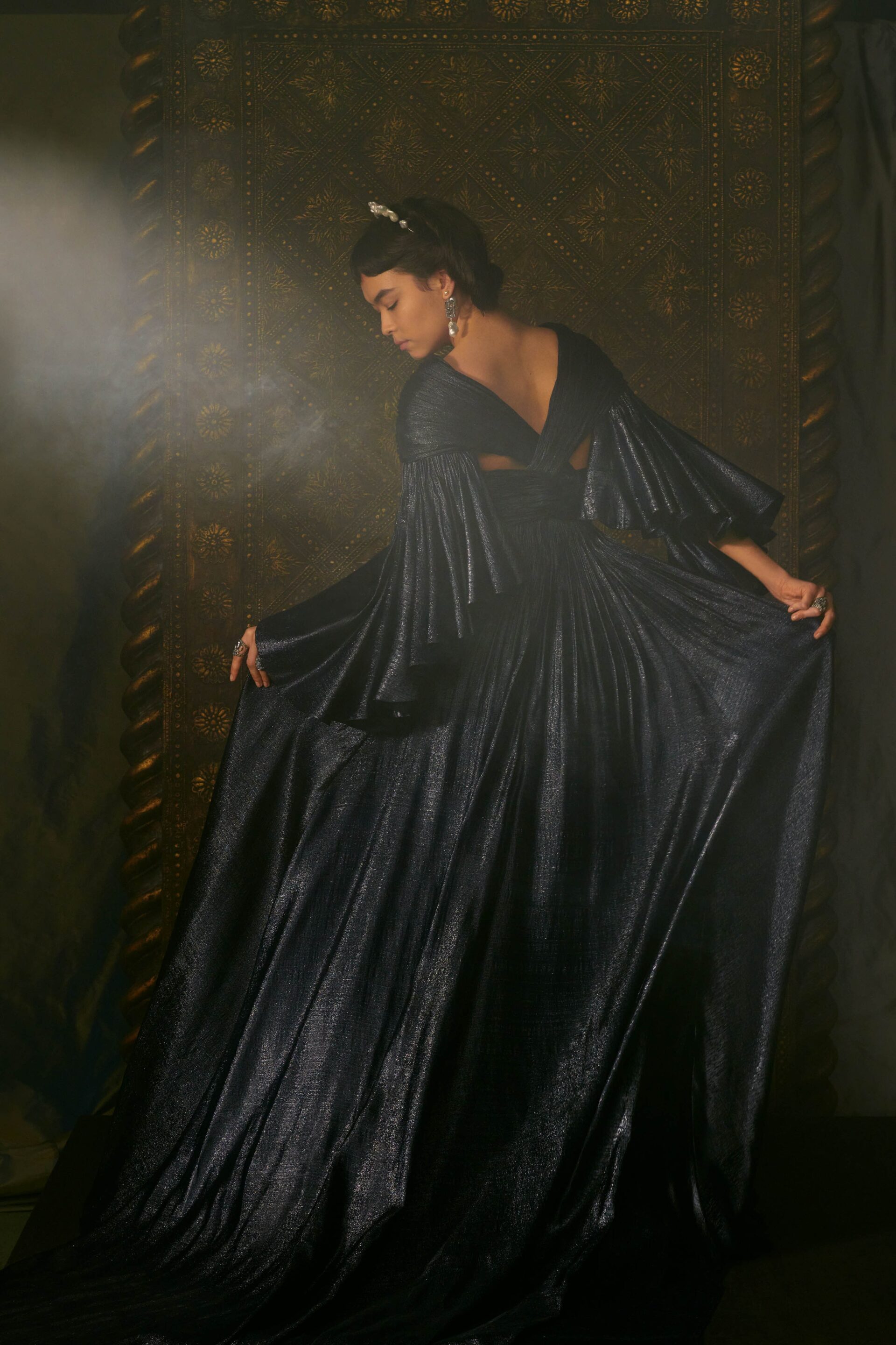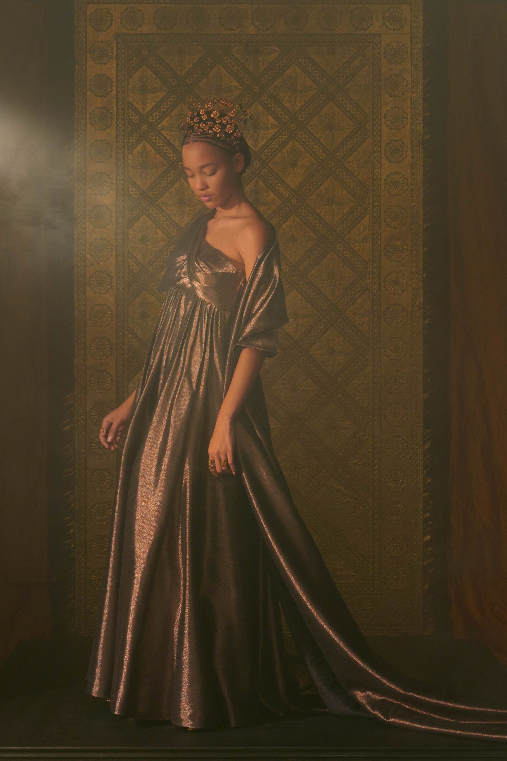 Bu mistik yolculuğa eşlik eden akışkan kesimler, soğuk toprak tonları ve ışıltılı dokular; koleksiyonun modern dünya ile bağını da güçlendiriyor.