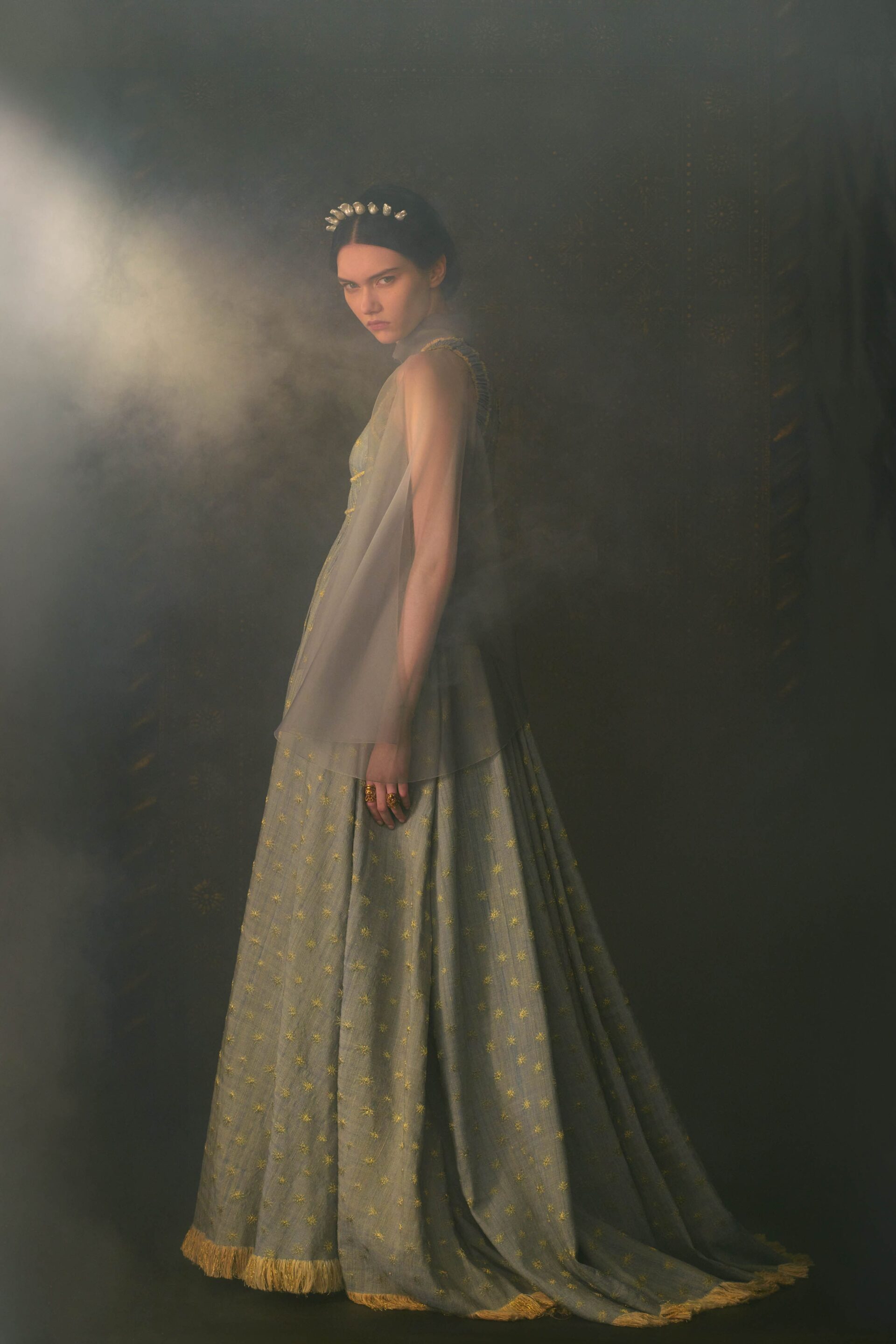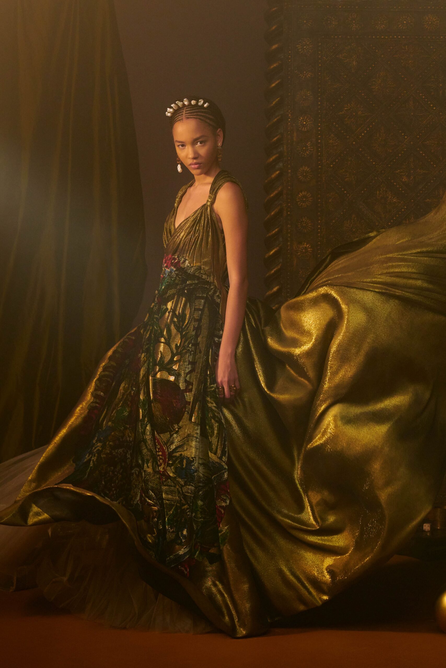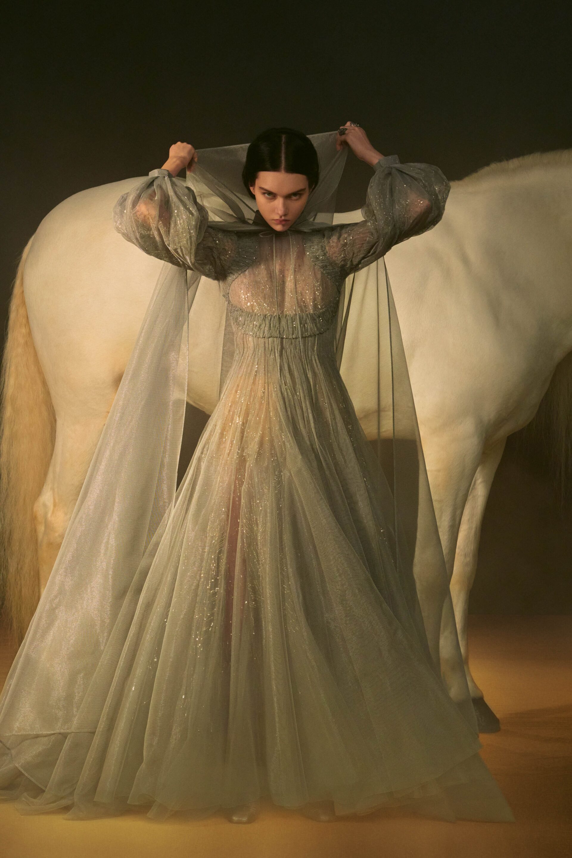 Bu mistik yolculuğa eşlik eden akışkan kesimler, soğuk toprak tonları ve ışıltılı dokular; koleksiyonun modern dünya ile bağını da güçlendiriyor.
