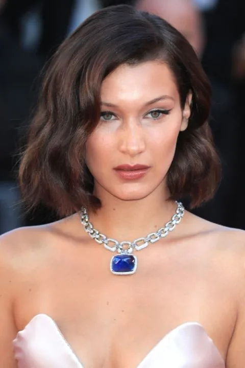 Kedi gözü makyajı, gül tonlarında ruju ve Dior şampanya tonu aydınlatıcısıyla Bella Hadid Cannes ruhuna en çok yakışan isimlerden biriydi.
