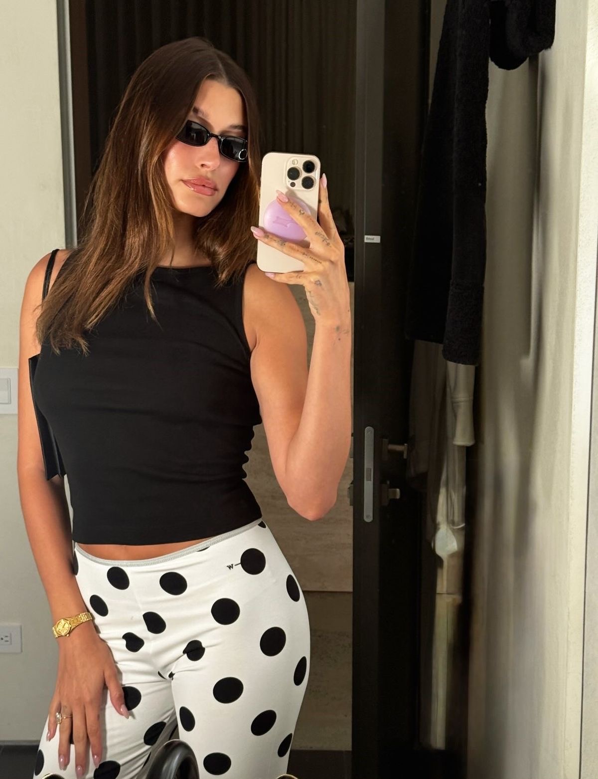 Günümüze gelirsek, capriler artık çok daha özgür. Sadece klasik siyah değil; ekose, puantiye, renkli ve iddialı versiyonlarıyla stil alanını genişletiyor. Özellikle Bella Hadid’in kırmızı ekoseli ve Hailey Bieber’ın puantiyeli seçimleri, bu parçanın ne kadar eğlenceli olabileceğini gösteriyor.