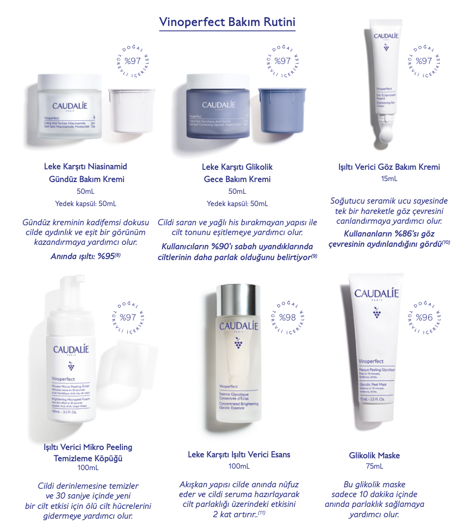 Formülü en hassas ciltlere bile uygundur ve ayrıca hamile ve emziren kadınlar da kullanabilir. Formülünün temelini Caudalie’nin patentli Viniferine içeriği oluşturur.