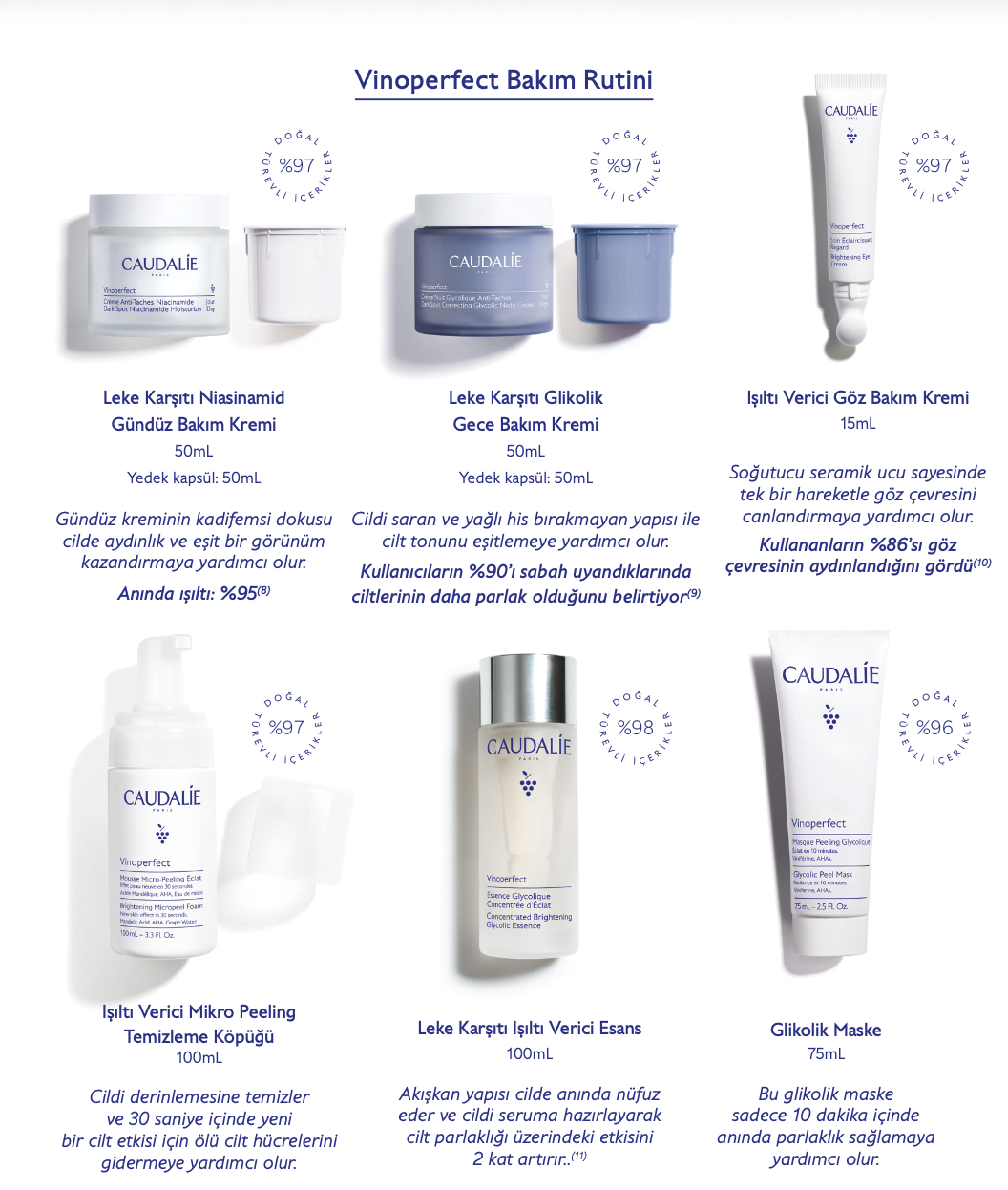 Artık cildi zorlayan kısa vadeli çözümler yerine, düzenli ve doğru içeriklerle oluşturulan bir bakım rutiniyle leke görünümünü azaltmak mümkün. Bu etkiyi desteklemek ve daha dengeli sonuçlar elde etmek için Caudalie’nin leke karşıtı serisi de değerlendirilebilir.