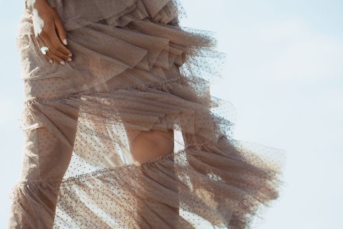 Güçlü kadın sanatçılardan ve doğanın güzelliğinden ilham alan koleksiyon, genç ve güçlü bir görünüm yaratan el yapımı fırfırlar, romantik kumaşlar ve sakin bir renk paletinden oluşuyor.