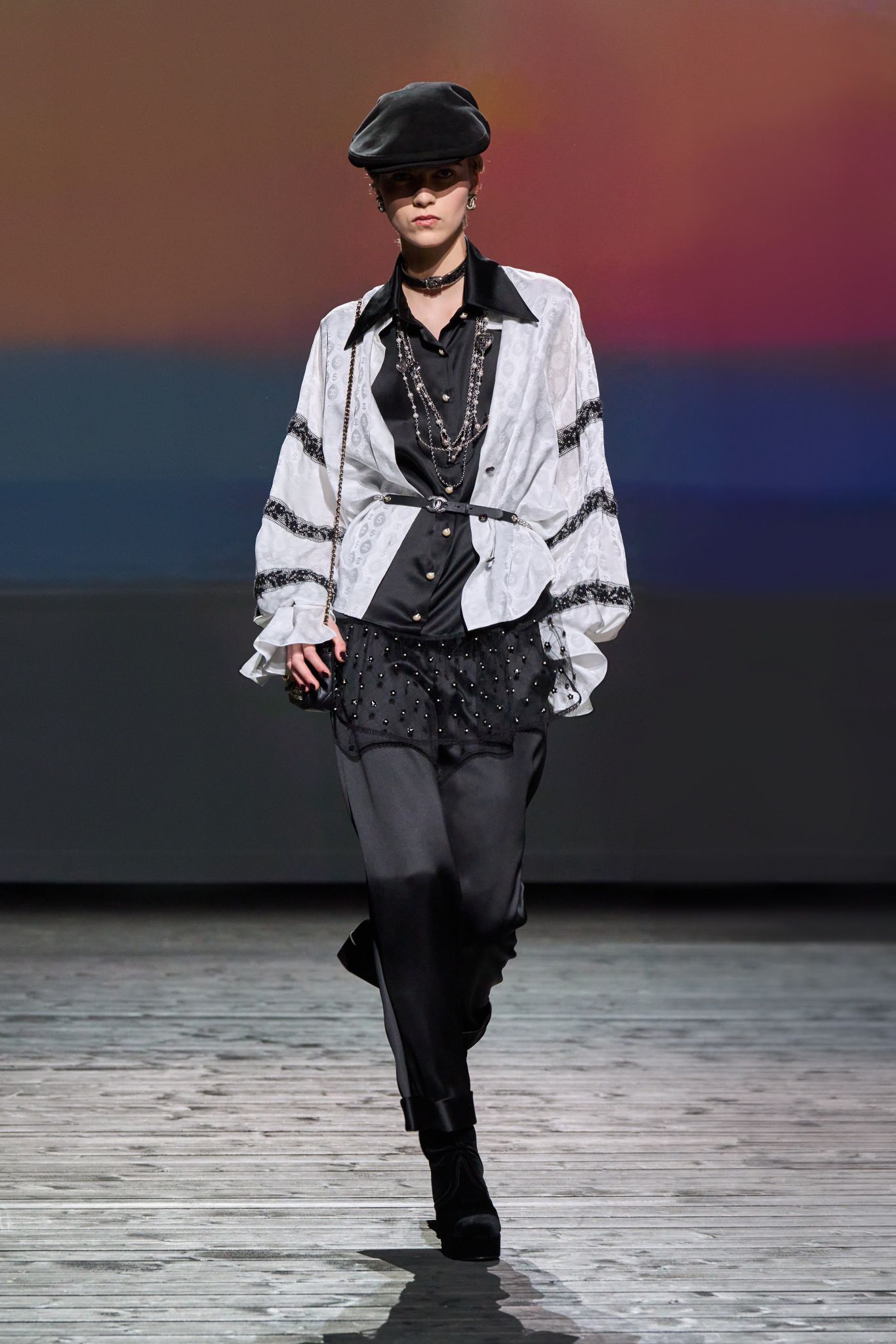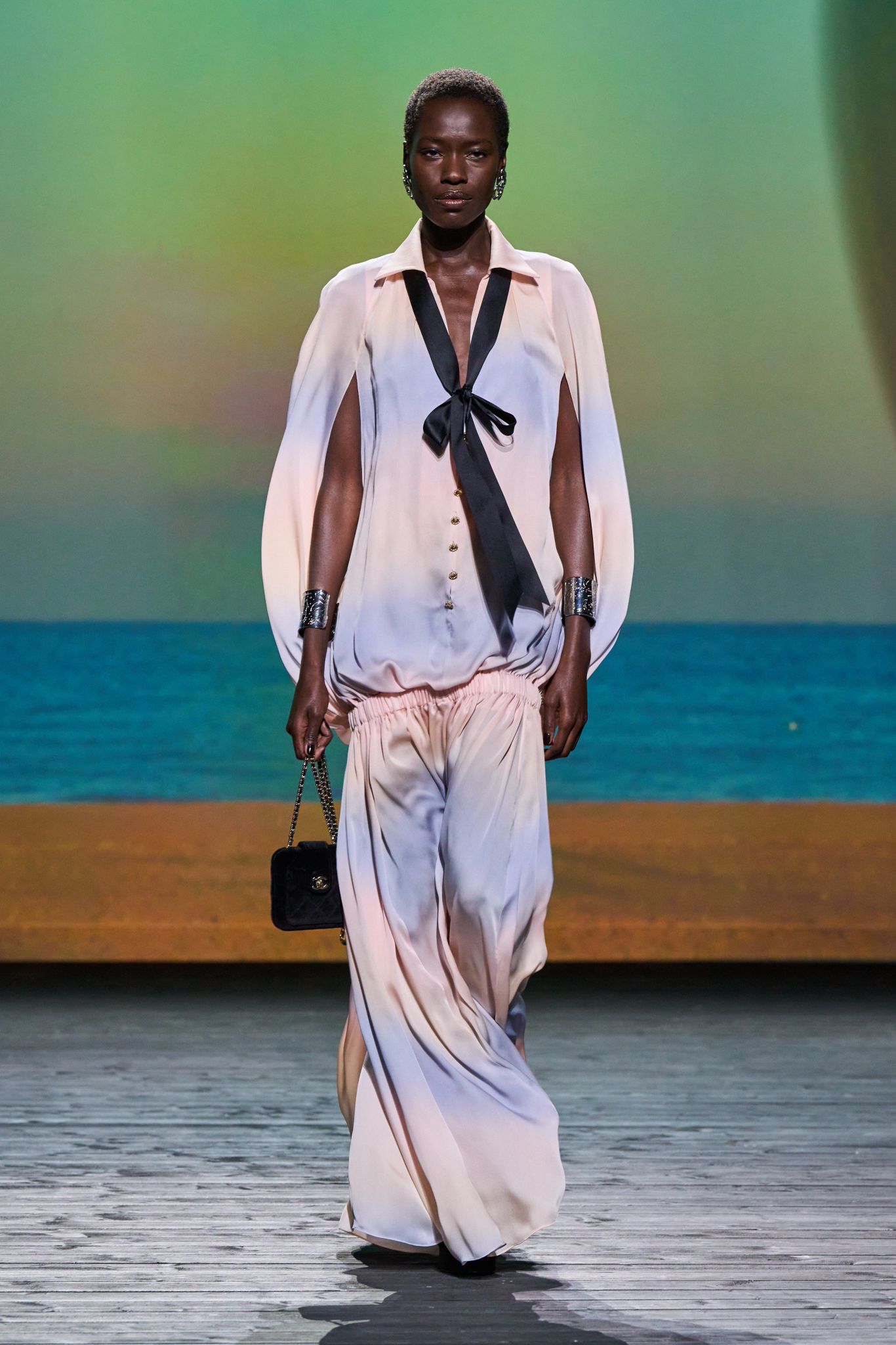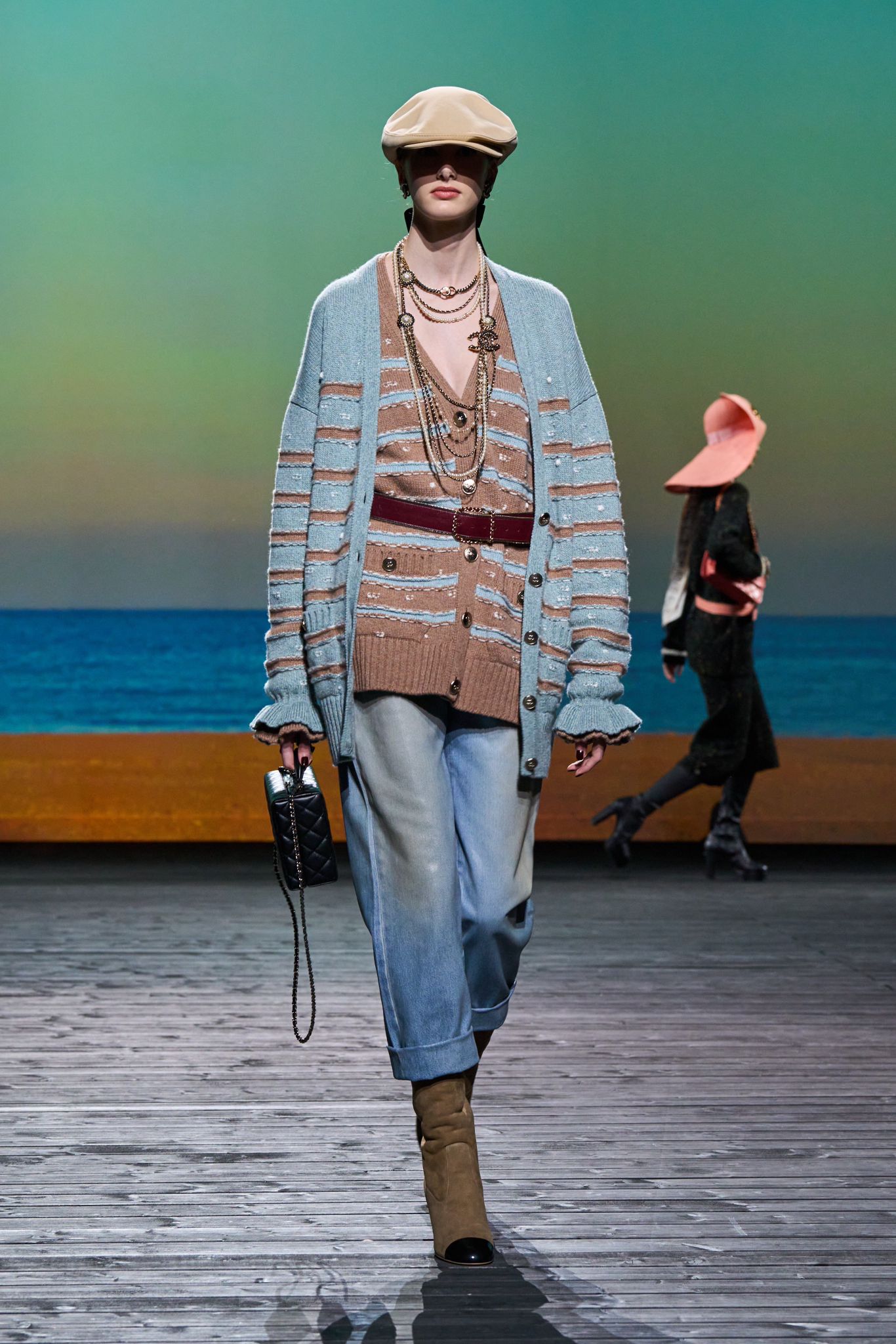Koleksiyon, Chanel’in ikonik tüvitleri, geniş kenarlı şapkaları ve zarif detaylar içeren kıyafetlerle, “yazlıkçı büyükanne” temasını andırıyor. Viard’ın erkeksi ve kadınsı unsurları ustaca birleştirdiği tasarımlar, özel dikim paltolardan, tüvit takımlara, ve hatta Nancy Meyers filmlerini anımsatan kalın beyaz kazaklara kadar uzanıyor. Koleksiyon aynı zamanda Fransız sinemasına saygı duruşunda bulunuyor; Brad Pitt ve Penélope Cruz’un yer aldığı, “Un homme et une femme” (Bir Kadın, Bir Erkek) filminin modern bir yeniden yorumlanışı ile başlayan defile, Chanel’in moda dünyasında hala nasıl bir film yıldızı cazibesi yaratabildiğinin altını çiziyor.