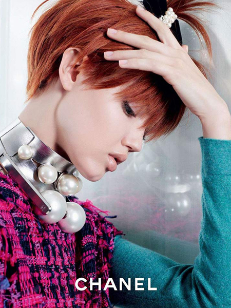 2014 İlkbahar-Yaz reklam kampanyası için Lindsey Wixson ve Sasha Luss’ı objektif karşısına geçiren Chanel, incinin uğursuzluk getirdiğine dair tüm batıl inançları hiçe sayıyor. Kontrast renkleri bir arada kullanan marka, imzası haline gelen tüvit kumaşından da vazgeçemiyor.  01