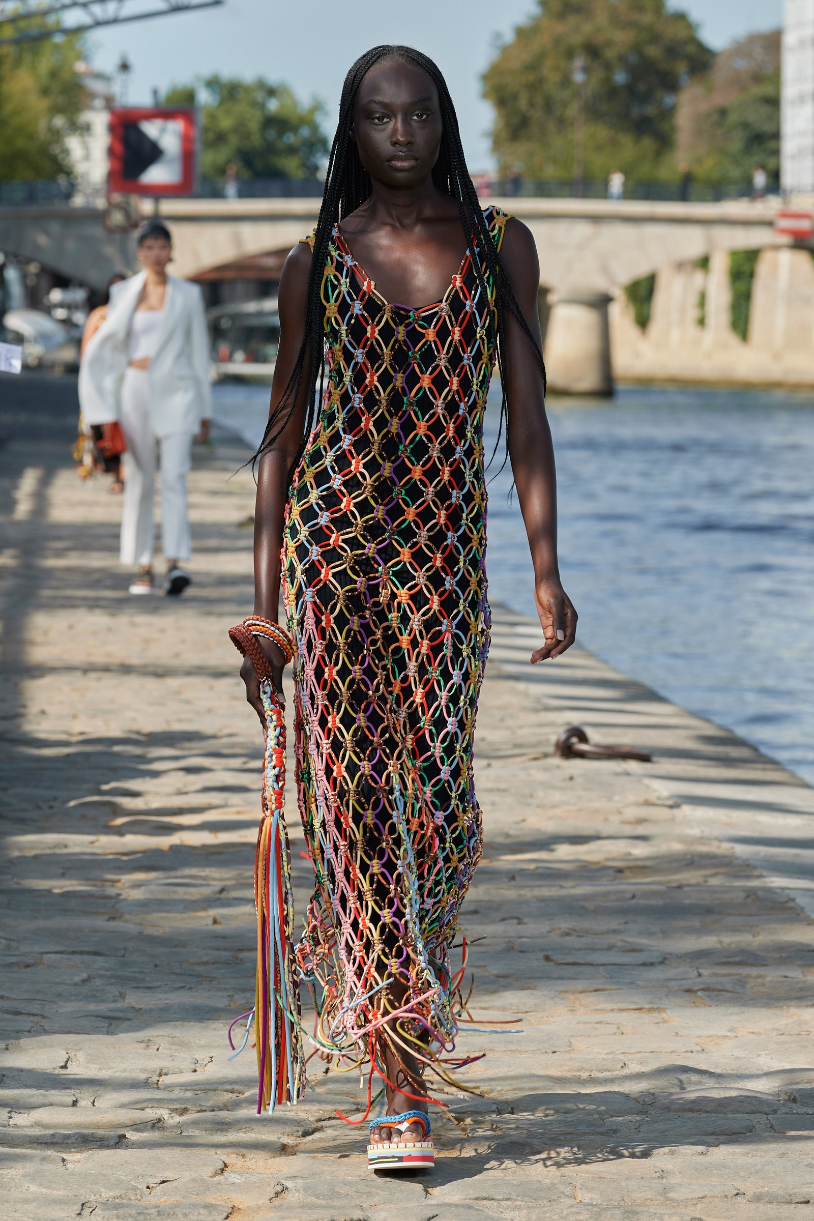 Hearst ve ekibi “lüks modanın aşırı derecede sanayileştiğine inanıyor”. Bu yüzden koleksiyondaki gökkuşağı rengindeki yelek elbiseler elde örüldü. Kolyeler, önceki koleksiyonlardan kalan kumaşların kıvrımlarına düğümlenen deniz kabuklarından yapıldı. El çantaları, daha fazla ölü kumaş ipliği örülerek oluşturuldu ve el örgüsü deri kulpları vardı. “Chloé Craft” logosu ile sergilenecek bu parçaların da içinde bulunduğu Chloé İlkbahar/Yaz 2022 koleksiyonunu aşağıdaki galeriden inceleyebilirsiniz.