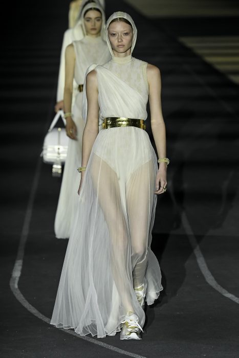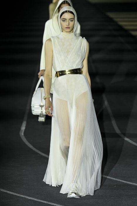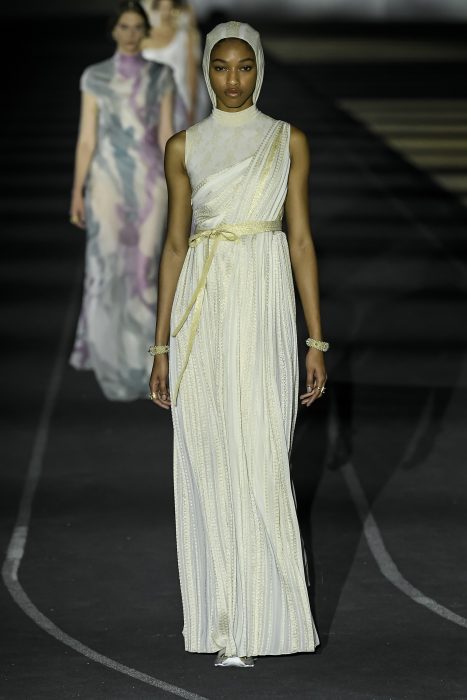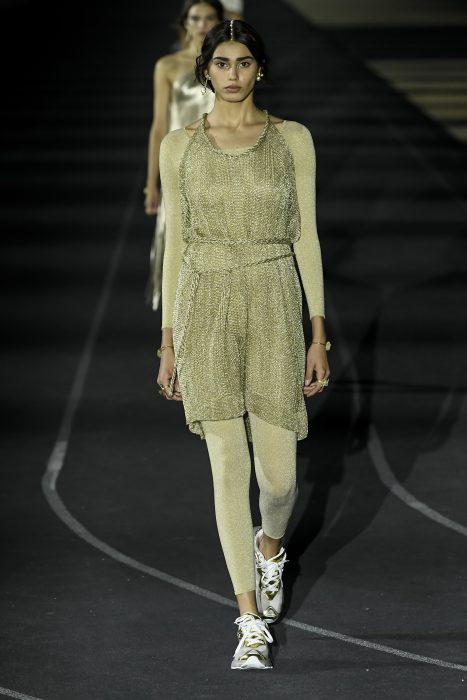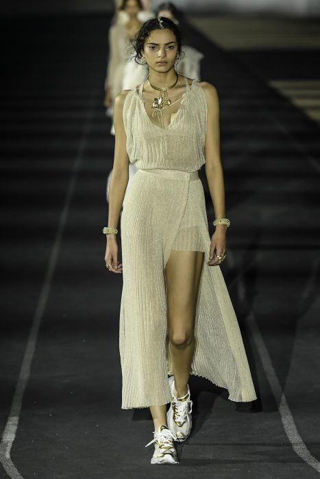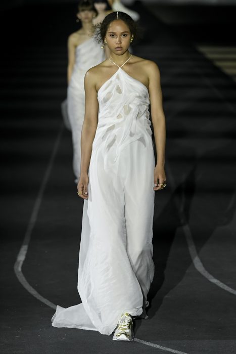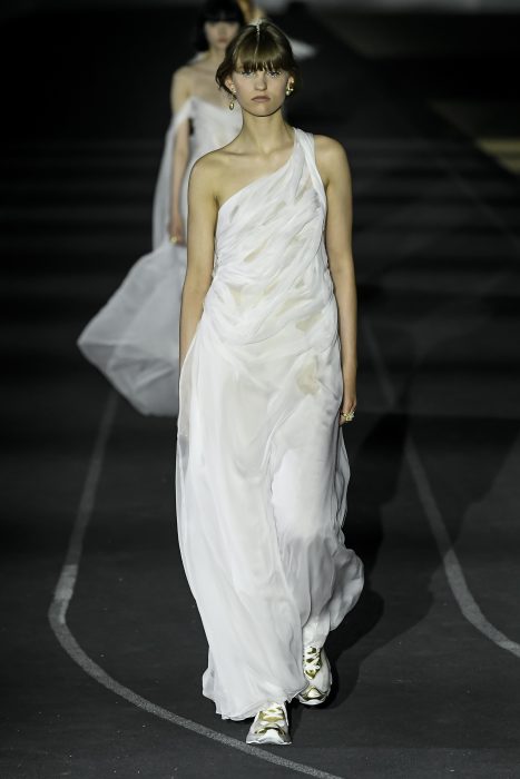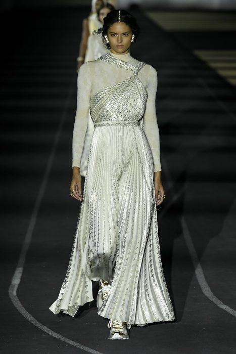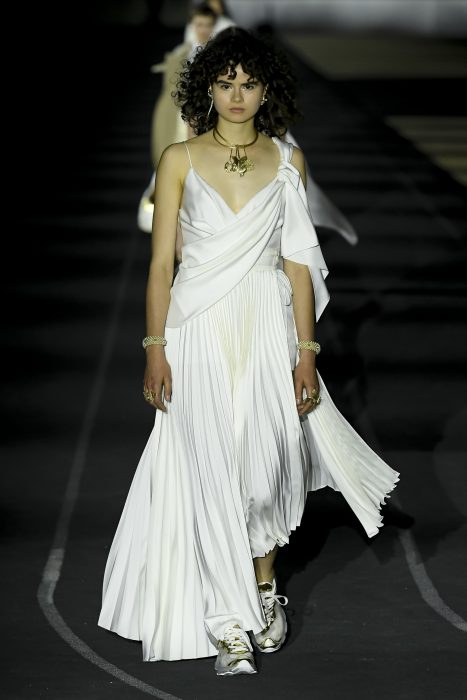 “Spor harekettir, spor özgürlüktür.” diyen Chiuri, Dior Cruise gösterisini sporun doğum yeri olan ve Antik Yunanlıların MÖ 330 dolaylarında ter döktüğü Panathenaic Stadyumu’na götürdü. Chiuri, pandemi sonrası arzularımızı dile getirerek, “Koleksiyonu burada göstermeye karar verdim çünkü kıyafetlerle hareket özgürlüğü vermenin bir yolu olarak ilgileniyorum” şeklinde ekliyor.