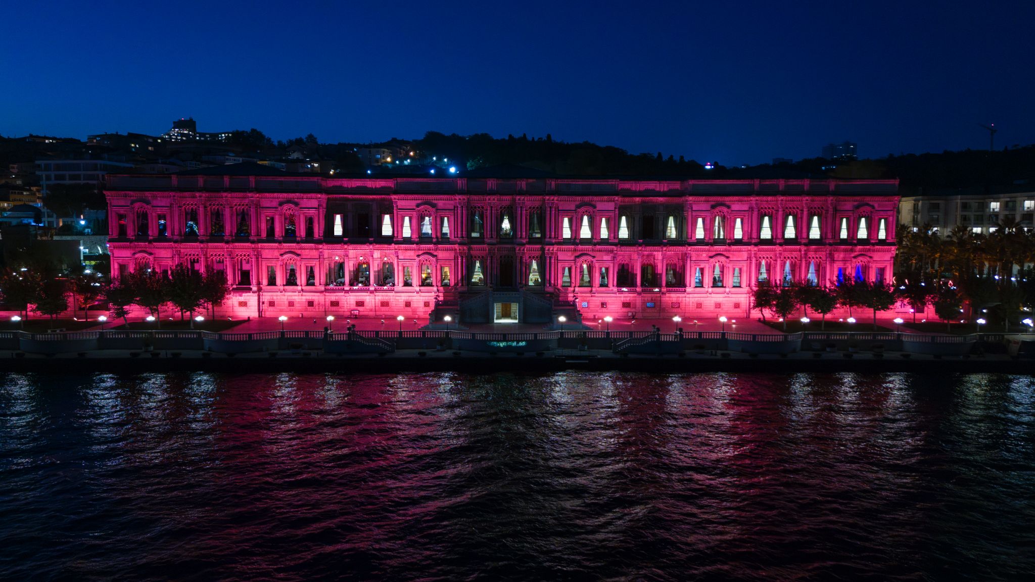 – Ekim ayı boyunca Çırağan Sarayı’nın Boğaz’a bakan ön cephesi ve tarihi kapısı pembe renkte aydınlatılıyor.