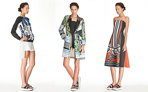 2014 Pre-Fall koleksiyonunda tropikal iklime ve Yunan tanrıçalarına gönderme yapan Clover Canyon, bomber ceketler, mini etekler ve üste oturan elbiselerle kışa giriş yapıyor.