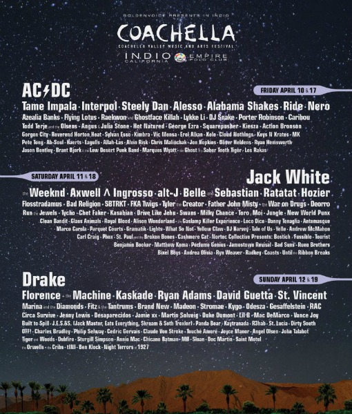 Jack White, Drake, AC/DC gibi isimlerin listede olduğunu belirtir ve bilet almak için hızlıca harekete geçmenizi öneririz.