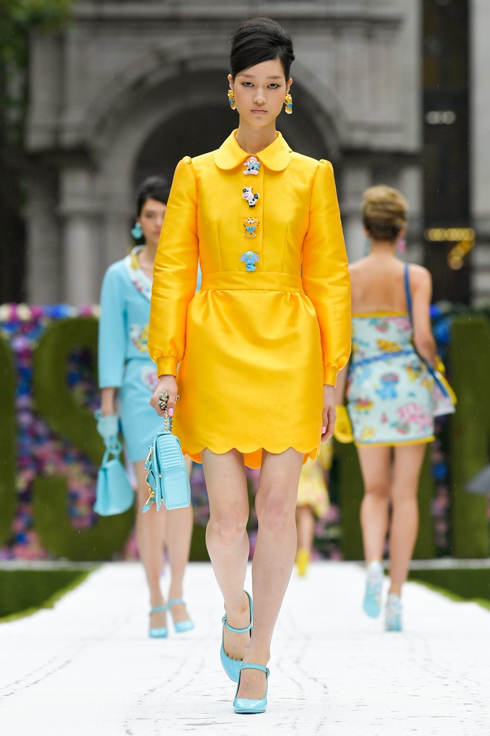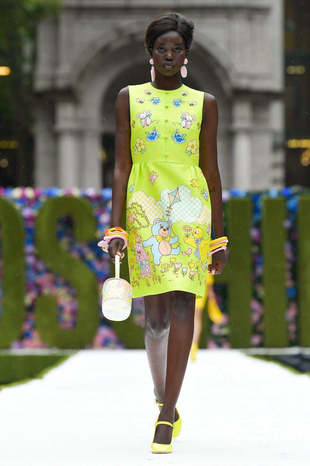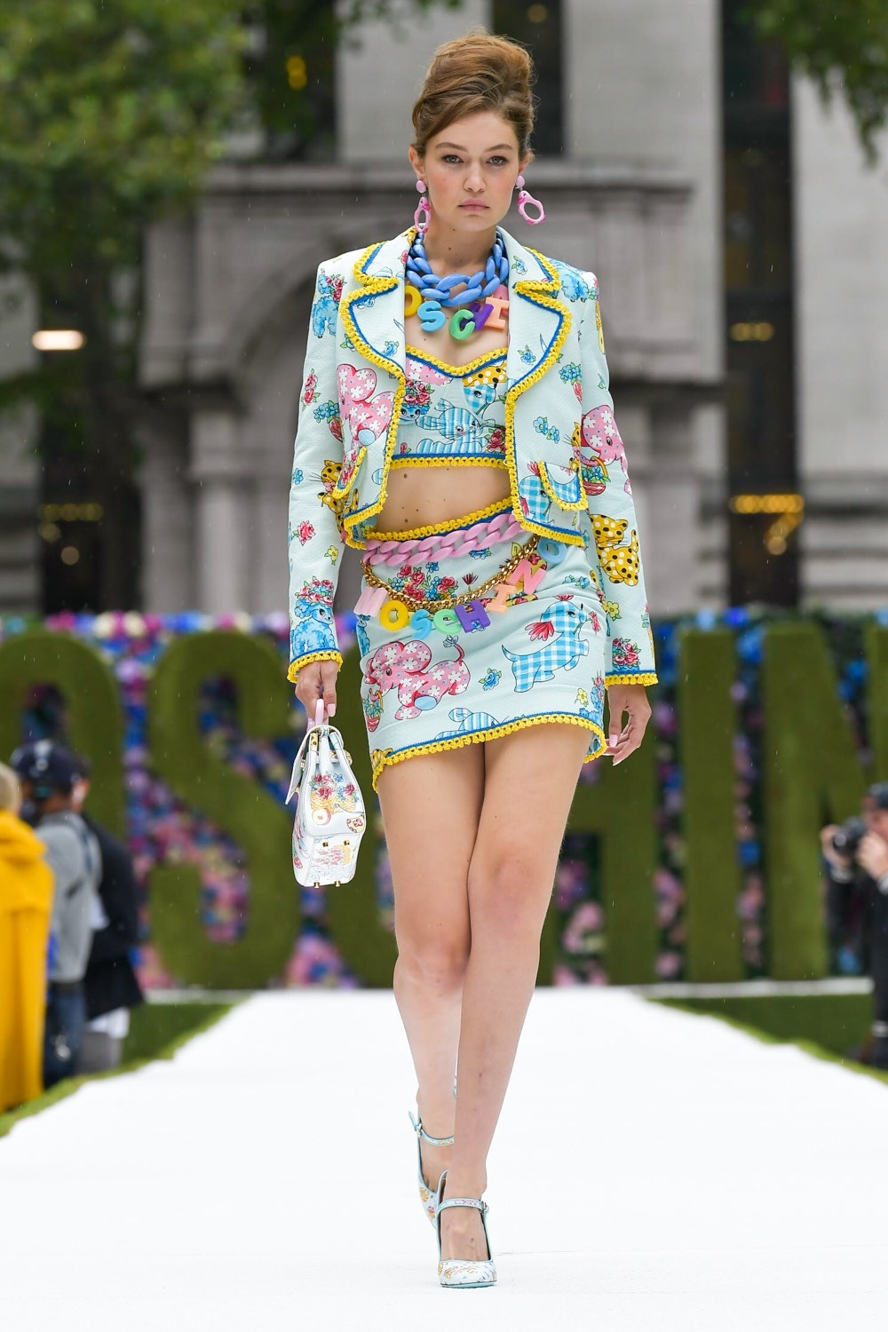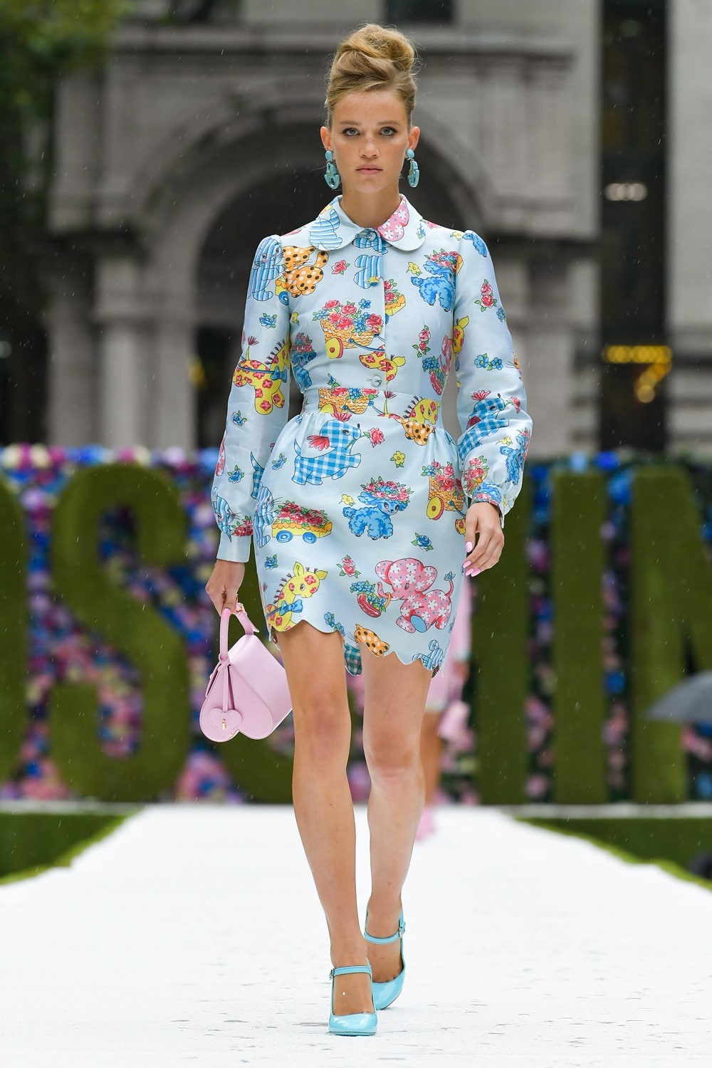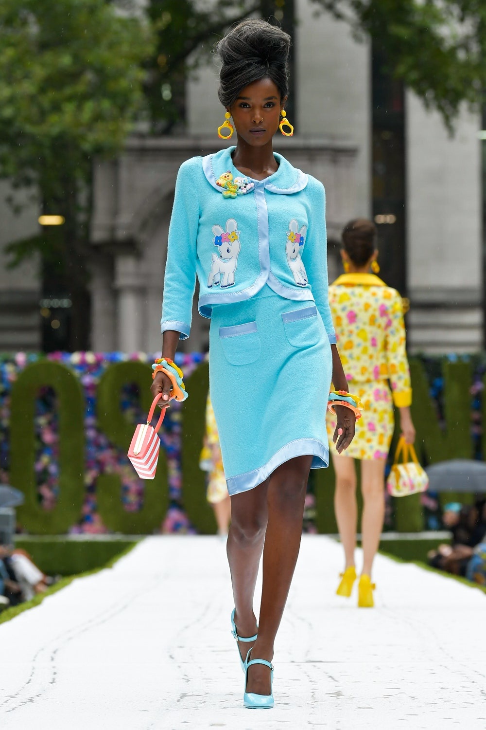 Bu yeni koleksiyonda formlar aynı kalsa da desenler moda severleri yepyeni bir Moschino ile tanıştırdı. Jeremy Scott desenlerde çocuk şarkılarını betimledi ve bunları sıcacık pastel renklerle birleştirdi. Tıpkı kuzu şeklindeki çantayla “Mary Had a Little Lamb” şarkısında atıfta bulunması gibi! Scott yeni koleksiyonda ilham aldığı düşünceyi şu şekilde dile getiriyor: “Belki de kalplerimde gizli bir çocukluk nostaljisi özlemi vardır. Bir battaniyeye sarılmanın aşkı… O güvenlik hissi. Koleksiyon kırmızı halı için uygun, ama aynı zamanda büyükanneniz hazırlamış gibi de rahat.”