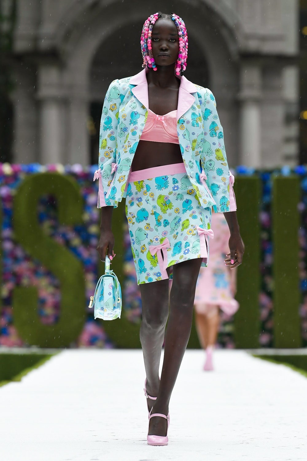Moschino İlkbahar/ Yaz 2022 tasarımlarında 90’ların önemli dizilerinden The Nanny’e göz kırpılıyor. Çünkü başrol Fran Drescher’in stilinin ana parçası mini takım elbiselerdi. Franco Moschino’nun ikonik mini takım elbiseleri ise elbette Fran Drescher için önemli bir yerdeydi.