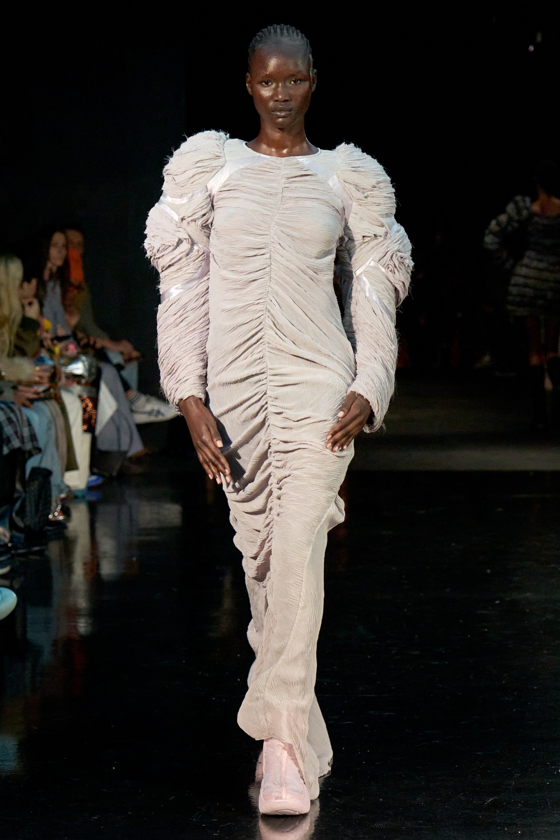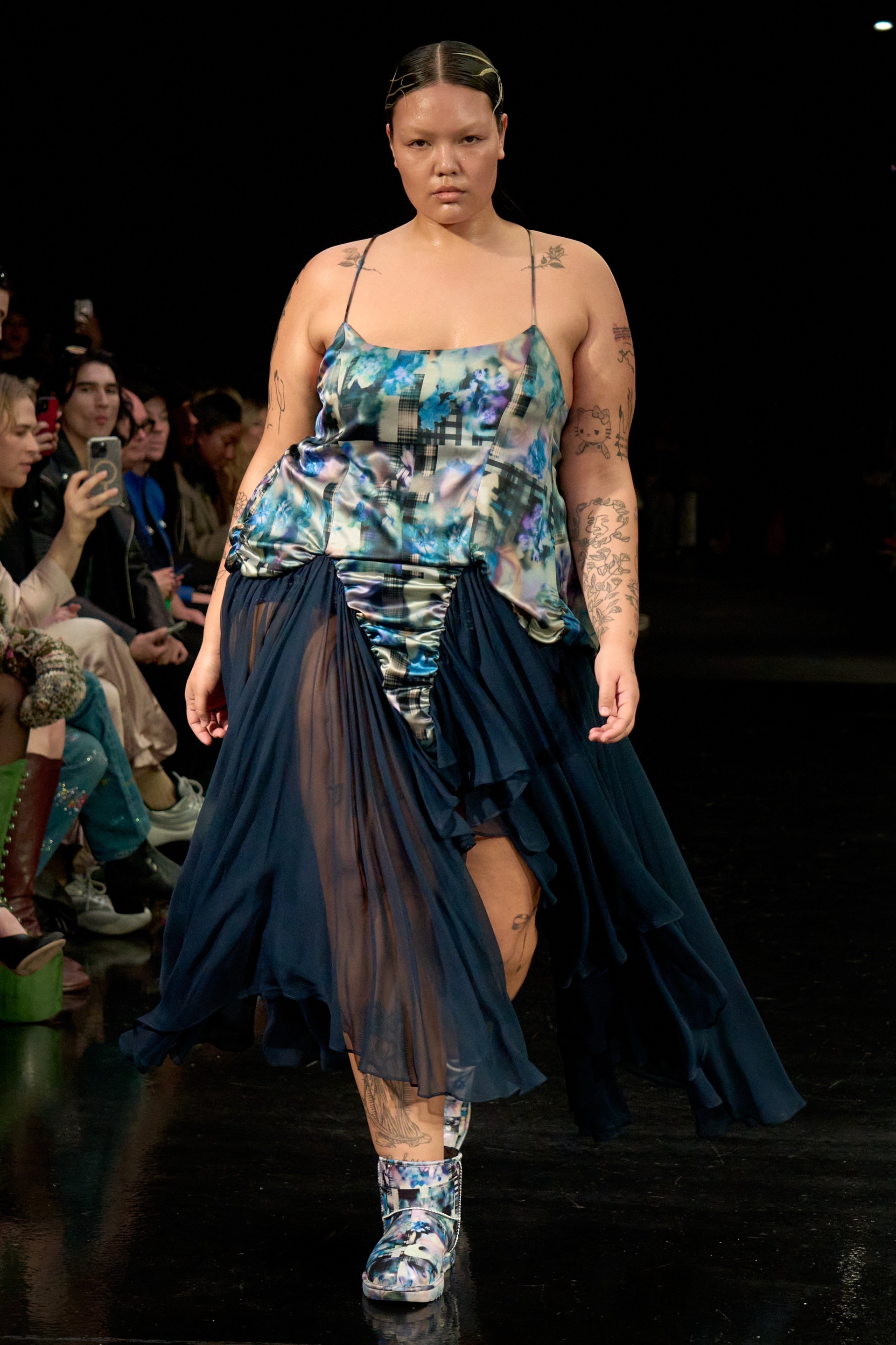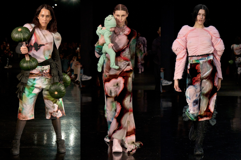 Collina Strada’nın koleksiyonu, markanın feminen gücünü cesurca sergiliyor. Hillary Taymour’un tasarımları kadınlığın çeşitliliğini ve gücünü kutlarken, aynı zamanda moda endüstrisinde sürdürülebilirlik ve kapsayıcılık değerlerine de odaklanıyor.