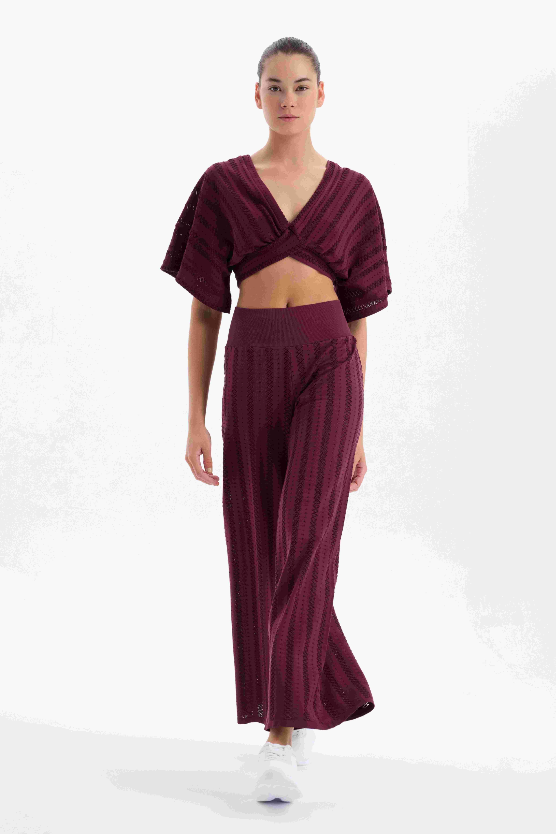 Crop top, nefes alabilen özel jakarlı kumaşı, modern yarasa kol kesimiyle şehir stilinde özgürce hareket etme imkanı sağlıyor.