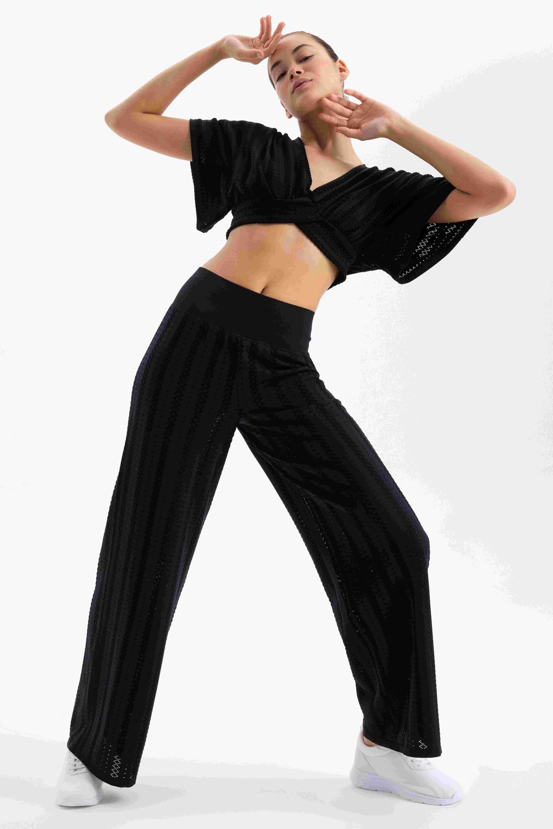 Nefes alan yapısı ve modern kesimiyle dikkat çeken delikli şortlu pantolon ister spor sütyeniyle ister sezonun favorisi crop top ile kolayca kombinlenebiliyor.