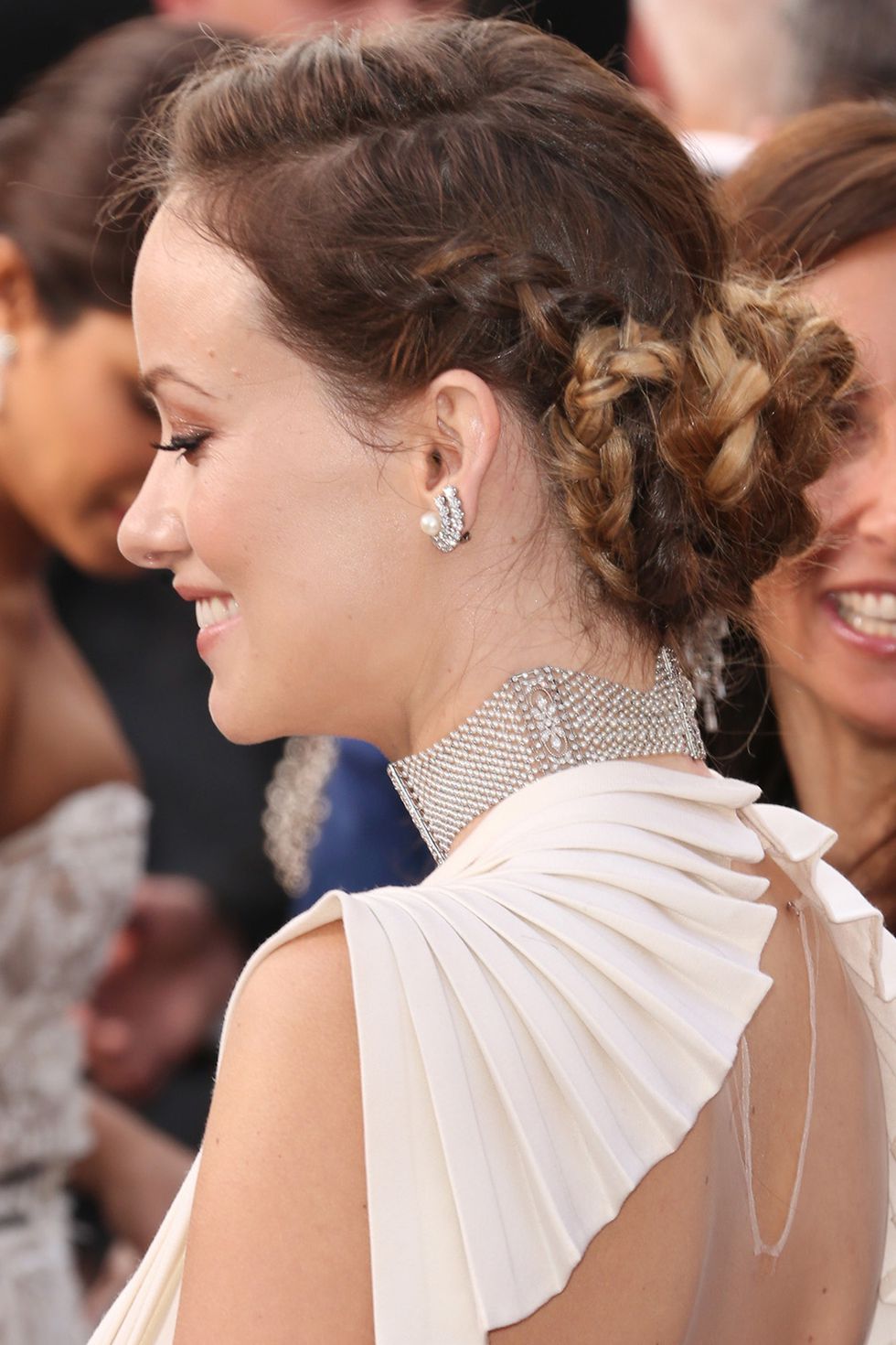 Düzgün örgüler için hiçbirimizin yeterli vakti yok! Olivia Wilde gibi gelişigüzel öreceğiniz örgülerinizi rastgele tepede bir topuz haline getirin. Serbest tutamlar tabii ki yine kilit nokta.