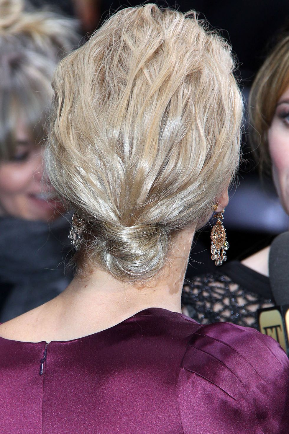 Jennifer Lawrence, saç modellerinde de rahatlığı tercih edenlerden. Dağınık saç modelleri özel gecelerde de vazgeçilmezi. Elegan bir görünüm ise dağınık ense topuzları harika bir seçenek. Dalgalı saçlarınızı ensede spontane bir şekilde toplayabilirsiniz.