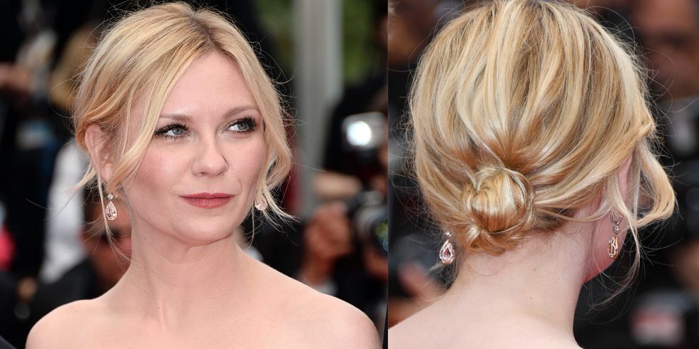 Daha bohem bir görünüm için Kirsten Dunst‘ın izinden gidebilirsiniz. Saçlarınızı ortadan ikiye ayırın ve perçemleri iki yana ayırın. Tek yapmanız gereken ensede topuz yapmak. Sonrasında baş gölgenizden rastgele tutamları gevşetin.