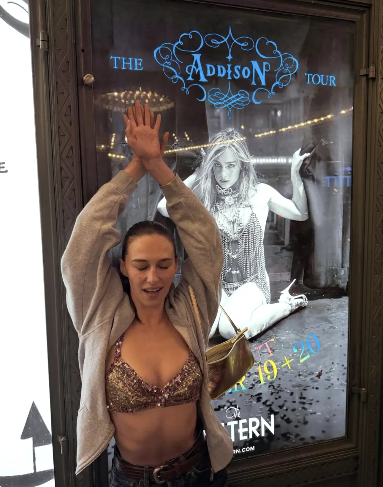 Basit bir gri sweatshirt’ün altına taşlı bir bluzu anca Devon bu kadar eforsuz ve şık gösterebilir. Onun bu kombini tarzına taşıması beklenmedik değil de uyumlu duruyor.