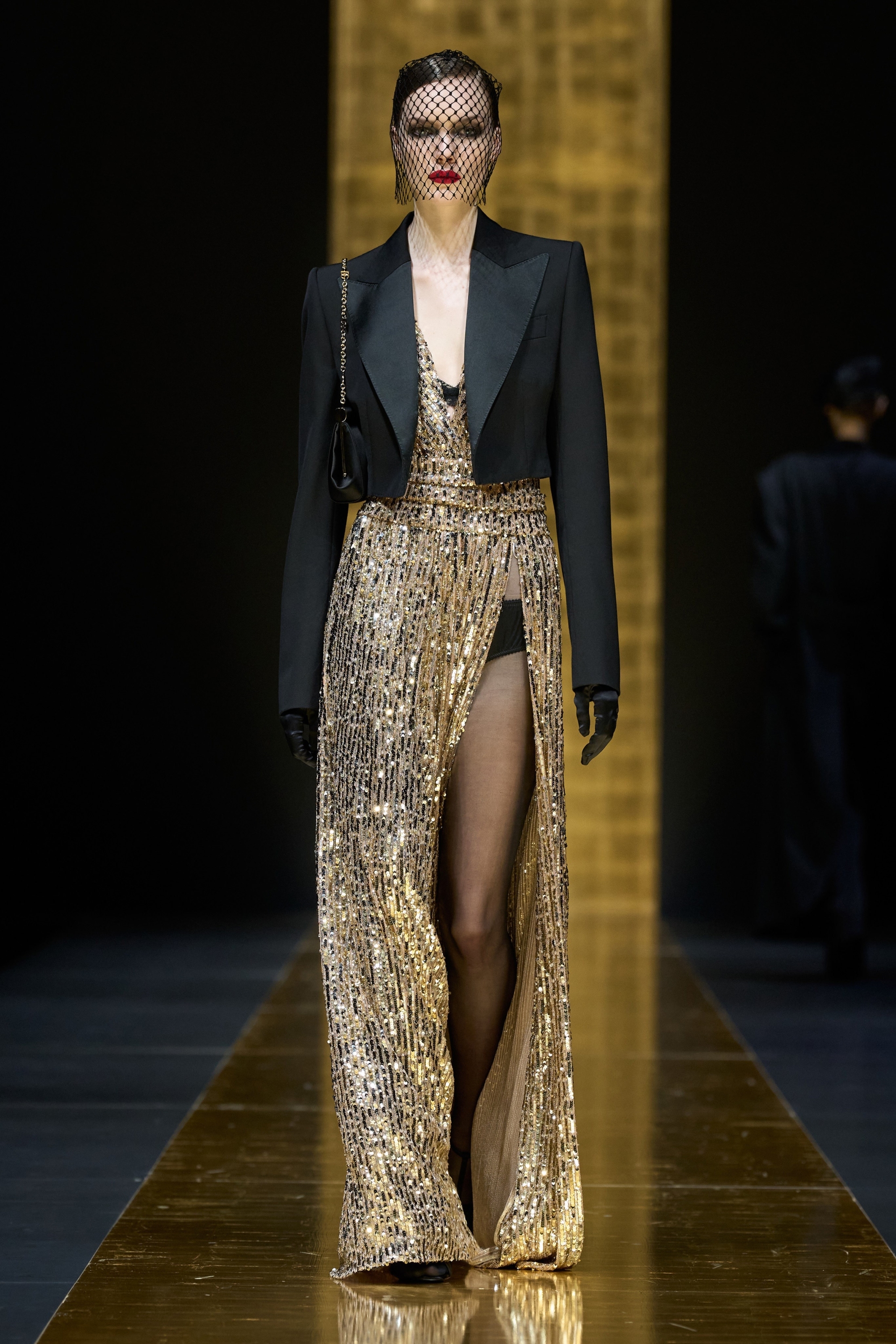Smokinler, Dolce & Gabbana’nın Sonbahar 2024 koleksiyonunda merkezi bir tema olarak belirlenmişti. Tasarımcılar, smokinin klasik ve sade zarafetinin, tarzın nihai sembolü olduğunu açıkladı. Defilede, dantelli kaşkorse ve saten terslerden oluşan bir Spencer ceketi ile başlayan bir dizi smokin varyasyonu sergilendi. Etek uzunlukları, yaka genişlikleri gibi detaylar, her bir smokin tarzında ustalıkla ayarlanmıştı. Koleksiyon, büyük beden smokinlerden dar belli ve kum saati siluetine sahip stillere kadar geniş bir yelpazede sunulmuştu.
