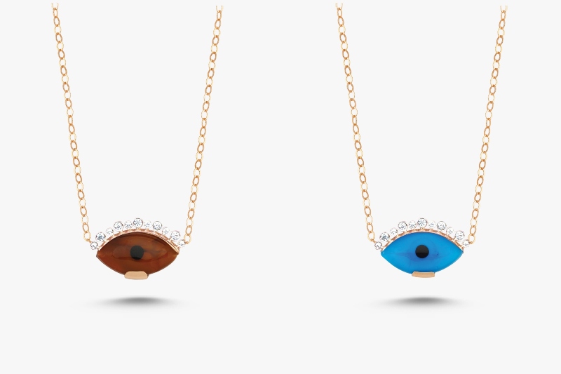 Şimdilik Deniz Mavisi ve Bal Köpüğü renkleriyle karşımıza çıkan koleksiyonda düz altın ve pırlantalı tasarımlar yer alıyor. Sevdiğinin gözü üzerinde olsun diyen ya da kötü gözlerin enerjisinden korunmak isteyenlerin tercih edeceği göz koleksiyonu ile tüm güzel enerjiler sizinle olacak. Zincir uzunluğu kişinin isteğine göre ayarlanabilir ECCE kolyelerini hiç çıkartmak istemeyeceksiniz. Özellikle kirpik formunu altın veya tercihen pırlantalı olarak tasarlayan ECCE’nin bu gözleri fark yaratacağa benziyor.