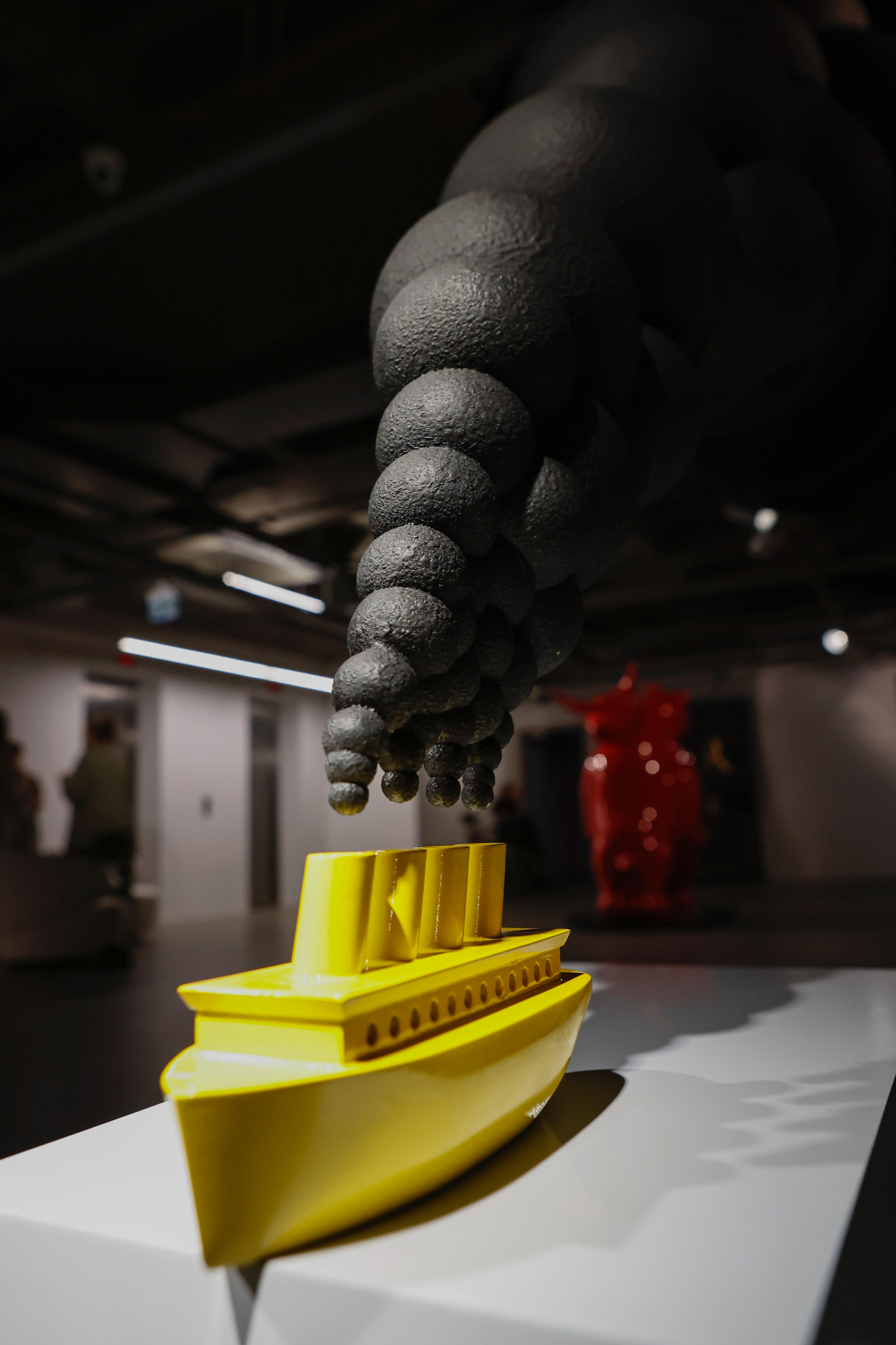 Çok gri, sevimsiz ve zor bir dünyada yaşıyoruz. Dertlerimizi neşeyle anlatmayı seviyorum. Sergiye de adını veren Transatlantik işi bunun güzel bir örneği. Bir küçük transatlantik heykeliyle karşılaşıyorsun ve bu küçük sarı sevimli şey sana insanlığın dünyayı nasıl mahvettiğini anlatıyor.